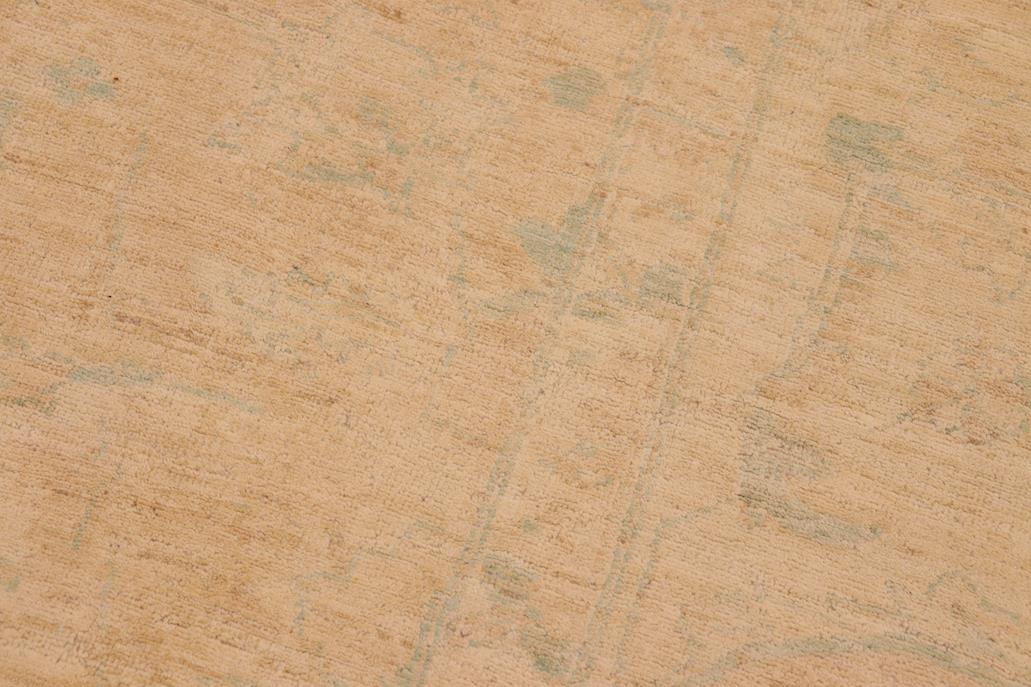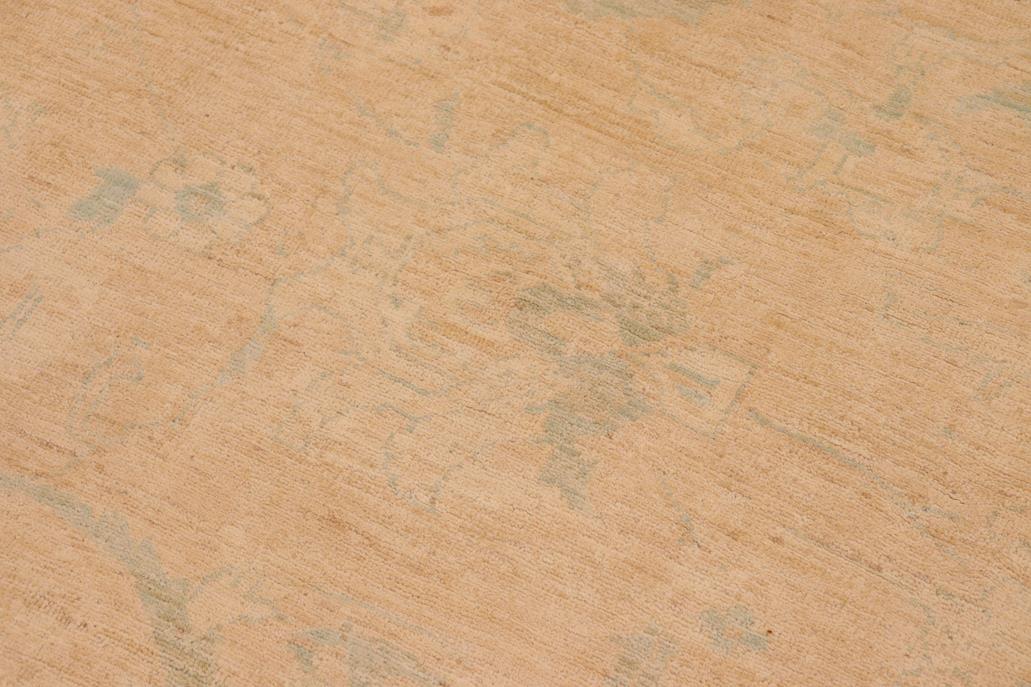 Enhance the ambiance of your home with this magnificent Persian-influenced Turkish hand-knotted rug made by skilled artisans capable of creating the most exceptional vegetable dyes and hand-spun wool. This exquisite handmade rug is a one-of-a-kind Peshawar Kafkaz, otherwise identified as Chobi, Chobi Peshawar, Oushak, or Ziegler rug. These handmade rugs are crafted in Pakistan utilizing superior-quality wool imported from Australia, New Zealand, and Korea in two types of weaves: the Persian weave and the Mori weave. This rug is meticulously crafted by hand using the finest natural vegetable dyes extracted from local plants. The artisans use a blend of hand-spun local and fine merino wool, resulting in a rug with a compelling texture, higher lanolin content, and longer staple. The artisans occasionally incorporate natural or artificial silk into the pile to enhance specific motifs. The finished product is an awe-inspiring flawless design execution and an understated palette that exudes elegance. Contemporary Peshawar rugs draw inspiration from antique Persian designs and feature modern design motifs with vibrant color tones. Hand-knotted with all-natural dyes, resulting in a unique abrash effect and subtle color variations in the pile. Peshawar rugs are known for their stunning and vibrant colors, which were achieved through a process inspired by antique methods. The rug's pile is meticulously trimmed to a moderate thickness and then stone-washed and sun-dried, resulting in a natural sheen and pleasing color tones. Transform the ambiance of your room into a luxurious haven with this gorgeous rug featuring a beautiful color palette. This stunning rug features an intricate oriental design that showcases royalty and seamlessly complements any decor. Its hand-knotted construction and natural fibers provide a soft and comfortable feel underfoot, making it the perfect addition to any room.