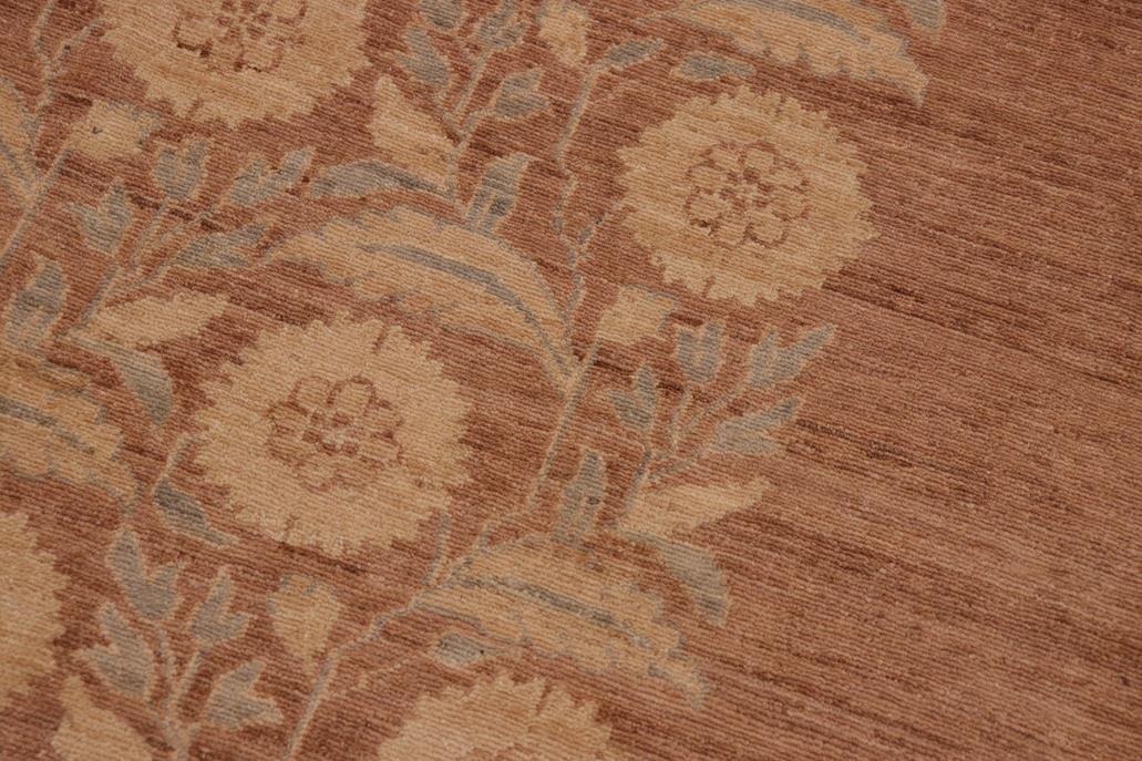 Enhance the ambiance of your home with this magnificent Persian-influenced Turkish hand-knotted rug made by skilled artisans capable of creating the most exceptional vegetable dyes and hand-spun wool. This exquisite handmade rug is a one-of-a-kind Peshawar Kafkaz, otherwise identified as Chobi, Chobi Peshawar, Oushak, or Ziegler rug. These handmade rugs are crafted in Pakistan utilizing superior-quality wool imported from Australia, New Zealand, and Korea in two types of weaves: the Persian weave and the Mori weave. This rug is meticulously crafted by hand using the finest natural vegetable dyes extracted from local plants. The artisans use a blend of hand-spun local and fine merino wool, resulting in a rug with a compelling texture, higher lanolin content, and longer staple. The artisans occasionally incorporate natural or artificial silk into the pile to enhance specific motifs. The finished product is an awe-inspiring flawless design execution and an understated palette that exudes elegance. Contemporary Peshawar rugs draw inspiration from antique Persian designs and feature modern design motifs with vibrant color tones. Hand-knotted with all-natural dyes, resulting in a unique abrash effect and subtle color variations in the pile. Peshawar rugs are known for their stunning and vibrant colors, which were achieved through a process inspired by antique methods. The rug's pile is meticulously trimmed to a moderate thickness and then stone-washed and sun-dried, resulting in a natural sheen and pleasing color tones. Transform the ambiance of your room into a luxurious haven with this gorgeous rug featuring a beautiful color palette. This stunning rug features an intricate oriental design that showcases royalty and seamlessly complements any decor. Its hand-knotted construction and natural fibers provide a soft and comfortable feel underfoot, making it the perfect addition to any room.