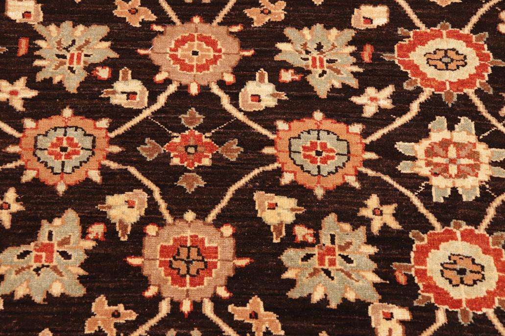 Enhance the ambiance of your home with this magnificent Persian-influenced Turkish hand-knotted rug made by skilled artisans capable of creating the most exceptional vegetable dyes and hand-spun wool. This exquisite handmade rug is a one-of-a-kind Peshawar Kafkaz, otherwise identified as Chobi, Chobi Peshawar, Oushak, or Ziegler rug. These handmade rugs are crafted in Pakistan utilizing superior-quality wool imported from Australia, New Zealand, and Korea in two types of weaves: the Persian weave and the Mori weave. This rug is meticulously crafted by hand using the finest natural vegetable dyes extracted from local plants. The artisans use a blend of hand-spun local and fine merino wool, resulting in a rug with a compelling texture, higher lanolin content, and longer staple. The artisans occasionally incorporate natural or artificial silk into the pile to enhance specific motifs. The finished product is an awe-inspiring flawless design execution and an understated palette that exudes elegance. Contemporary Peshawar rugs draw inspiration from antique Persian designs and feature modern design motifs with vibrant color tones. Hand-knotted with all-natural dyes, resulting in a unique abrash effect and subtle color variations in the pile. Peshawar rugs are known for their stunning and vibrant colors, which were achieved through a process inspired by antique methods. The rug's pile is meticulously trimmed to a moderate thickness and then stone-washed and sun-dried, resulting in a natural sheen and pleasing color tones. Transform the ambiance of your room into a luxurious haven with this gorgeous rug featuring a beautiful color palette. This stunning rug features an intricate oriental design that showcases royalty and seamlessly complements any decor. Its hand-knotted construction and natural fibers provide a soft and comfortable feel underfoot, making it the perfect addition to any room.