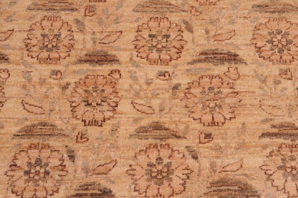 Enhance the ambiance of your home with this magnificent Persian-influenced Turkish hand-knotted rug made by skilled artisans capable of creating the most exceptional vegetable dyes and hand-spun wool. This exquisite handmade rug is a one-of-a-kind Peshawar Kafkaz, otherwise identified as Chobi, Chobi Peshawar, Oushak, or Ziegler rug. These handmade rugs are crafted in Pakistan utilizing superior-quality wool imported from Australia, New Zealand, and Korea in two types of weaves: the Persian weave and the Mori weave. This rug is meticulously crafted by hand using the finest natural vegetable dyes extracted from local plants. The artisans use a blend of hand-spun local and fine merino wool, resulting in a rug with a compelling texture, higher lanolin content, and longer staple. The artisans occasionally incorporate natural or artificial silk into the pile to enhance specific motifs. The finished product is an awe-inspiring flawless design execution and an understated palette that exudes elegance. Contemporary Peshawar rugs draw inspiration from antique Persian designs and feature modern design motifs with vibrant color tones. Hand-knotted with all-natural dyes, resulting in a unique abrash effect and subtle color variations in the pile. Peshawar rugs are known for their stunning and vibrant colors, which were achieved through a process inspired by antique methods. The rug's pile is meticulously trimmed to a moderate thickness and then stone-washed and sun-dried, resulting in a natural sheen and pleasing color tones. Transform the ambiance of your room into a luxurious haven with this gorgeous rug featuring a beautiful color palette. This stunning rug features an intricate oriental design that showcases royalty and seamlessly complements any decor. Its hand-knotted construction and natural fibers provide a soft and comfortable feel underfoot, making it the perfect addition to any room.