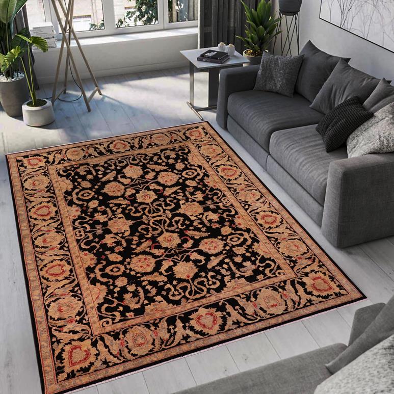 Shabby Chic Ziegler Martina Black/Black Wool Rug - 7'7'' x 9'7''