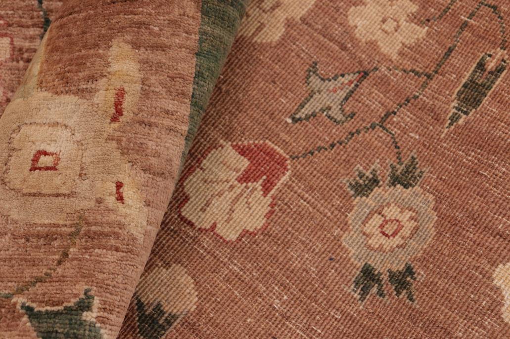 Enhance the ambiance of your home with this magnificent Persian-influenced Turkish hand-knotted rug made by skilled artisans capable of creating the most exceptional vegetable dyes and hand-spun wool. This exquisite handmade rug is a one-of-a-kind Peshawar Kafkaz, otherwise identified as Chobi, Chobi Peshawar, Oushak, or Ziegler rug. These handmade rugs are crafted in Pakistan utilizing superior-quality wool imported from Australia, New Zealand, and Korea in two types of weaves: the Persian weave and the Mori weave. This rug is meticulously crafted by hand using the finest natural vegetable dyes extracted from local plants. The artisans use a blend of hand-spun local and fine merino wool, resulting in a rug with a compelling texture, higher lanolin content, and longer staple. The artisans occasionally incorporate natural or artificial silk into the pile to enhance specific motifs. The finished product is an awe-inspiring flawless design execution and an understated palette that exudes elegance. Contemporary Peshawar rugs draw inspiration from antique Persian designs and feature modern design motifs with vibrant color tones. Hand-knotted with all-natural dyes, resulting in a unique abrash effect and subtle color variations in the pile. Peshawar rugs are known for their stunning and vibrant colors, which were achieved through a process inspired by antique methods. The rug's pile is meticulously trimmed to a moderate thickness and then stone-washed and sun-dried, resulting in a natural sheen and pleasing color tones. Transform the ambiance of your room into a luxurious haven with this gorgeous rug featuring a beautiful color palette. This stunning rug features an intricate oriental design that showcases royalty and seamlessly complements any decor. Its hand-knotted construction and natural fibers provide a soft and comfortable feel underfoot, making it the perfect addition to any room.