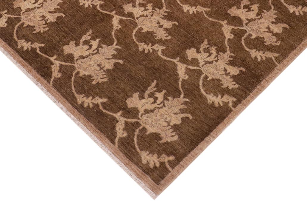 Enhance the ambiance of your home with this magnificent Persian-influenced Turkish hand-knotted rug made by skilled artisans capable of creating the most exceptional vegetable dyes and hand-spun wool. This exquisite handmade rug is a one-of-a-kind Peshawar Kafkaz, otherwise identified as Chobi, Chobi Peshawar, Oushak, or Ziegler rug. These handmade rugs are crafted in Pakistan utilizing superior-quality wool imported from Australia, New Zealand, and Korea in two types of weaves: the Persian weave and the Mori weave. This rug is meticulously crafted by hand using the finest natural vegetable dyes extracted from local plants. The artisans use a blend of hand-spun local and fine merino wool, resulting in a rug with a compelling texture, higher lanolin content, and longer staple. The artisans occasionally incorporate natural or artificial silk into the pile to enhance specific motifs. The finished product is an awe-inspiring flawless design execution and an understated palette that exudes elegance. Contemporary Peshawar rugs draw inspiration from antique Persian designs and feature modern design motifs with vibrant color tones. Hand-knotted with all-natural dyes, resulting in a unique abrash effect and subtle color variations in the pile. Peshawar rugs are known for their stunning and vibrant colors, which were achieved through a process inspired by antique methods. The rug's pile is meticulously trimmed to a moderate thickness and then stone-washed and sun-dried, resulting in a natural sheen and pleasing color tones. Transform the ambiance of your room into a luxurious haven with this gorgeous rug featuring a beautiful color palette. This stunning rug features an intricate oriental design that showcases royalty and seamlessly complements any decor. Its hand-knotted construction and natural fibers provide a soft and comfortable feel underfoot, making it the perfect addition to any room.