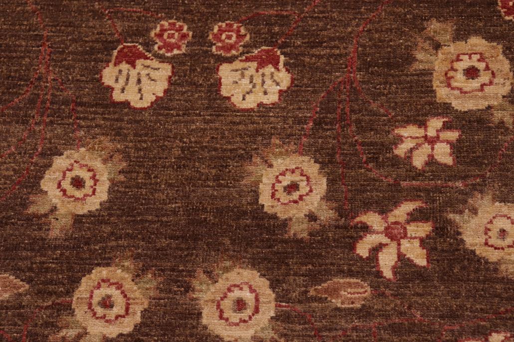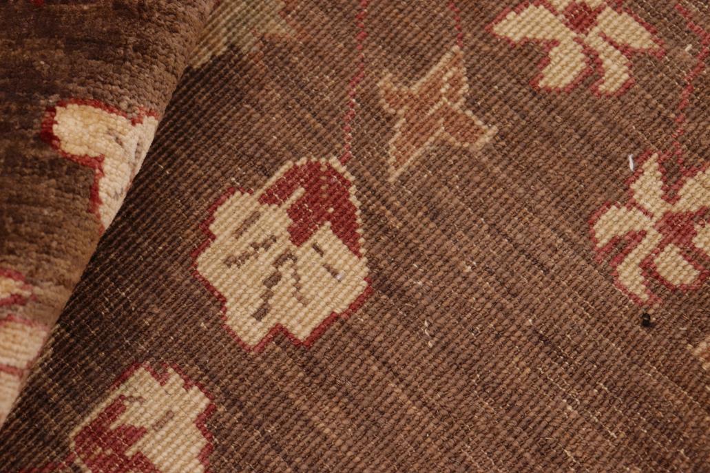 Enhance the ambiance of your home with this magnificent Persian-influenced Turkish hand-knotted rug made by skilled artisans capable of creating the most exceptional vegetable dyes and hand-spun wool. This exquisite handmade rug is a one-of-a-kind Peshawar Kafkaz, otherwise identified as Chobi, Chobi Peshawar, Oushak, or Ziegler rug. These handmade rugs are crafted in Pakistan utilizing superior-quality wool imported from Australia, New Zealand, and Korea in two types of weaves: the Persian weave and the Mori weave. This rug is meticulously crafted by hand using the finest natural vegetable dyes extracted from local plants. The artisans use a blend of hand-spun local and fine merino wool, resulting in a rug with a compelling texture, higher lanolin content, and longer staple. The artisans occasionally incorporate natural or artificial silk into the pile to enhance specific motifs. The finished product is an awe-inspiring flawless design execution and an understated palette that exudes elegance. Contemporary Peshawar rugs draw inspiration from antique Persian designs and feature modern design motifs with vibrant color tones. Hand-knotted with all-natural dyes, resulting in a unique abrash effect and subtle color variations in the pile. Peshawar rugs are known for their stunning and vibrant colors, which were achieved through a process inspired by antique methods. The rug's pile is meticulously trimmed to a moderate thickness and then stone-washed and sun-dried, resulting in a natural sheen and pleasing color tones. Transform the ambiance of your room into a luxurious haven with this gorgeous rug featuring a beautiful color palette. This stunning rug features an intricate oriental design that showcases royalty and seamlessly complements any decor. Its hand-knotted construction and natural fibers provide a soft and comfortable feel underfoot, making it the perfect addition to any room.