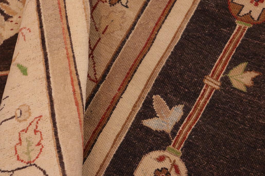 Enhance the ambiance of your home with this magnificent Persian-influenced Turkish hand-knotted rug made by skilled artisans capable of creating the most exceptional vegetable dyes and hand-spun wool. This exquisite handmade rug is a one-of-a-kind Peshawar Kafkaz, otherwise identified as Chobi, Chobi Peshawar, Oushak, or Ziegler rug. These handmade rugs are crafted in Pakistan utilizing superior-quality wool imported from Australia, New Zealand, and Korea in two types of weaves: the Persian weave and the Mori weave. This rug is meticulously crafted by hand using the finest natural vegetable dyes extracted from local plants. The artisans use a blend of hand-spun local and fine merino wool, resulting in a rug with a compelling texture, higher lanolin content, and longer staple. The artisans occasionally incorporate natural or artificial silk into the pile to enhance specific motifs. The finished product is an awe-inspiring flawless design execution and an understated palette that exudes elegance. Contemporary Peshawar rugs draw inspiration from antique Persian designs and feature modern design motifs with vibrant color tones. Hand-knotted with all-natural dyes, resulting in a unique abrash effect and subtle color variations in the pile. Peshawar rugs are known for their stunning and vibrant colors, which were achieved through a process inspired by antique methods. The rug's pile is meticulously trimmed to a moderate thickness and then stone-washed and sun-dried, resulting in a natural sheen and pleasing color tones. Transform the ambiance of your room into a luxurious haven with this gorgeous rug featuring a beautiful color palette. This stunning rug features an intricate oriental design that showcases royalty and seamlessly complements any decor. Its hand-knotted construction and natural fibers provide a soft and comfortable feel underfoot, making it the perfect addition to any room.