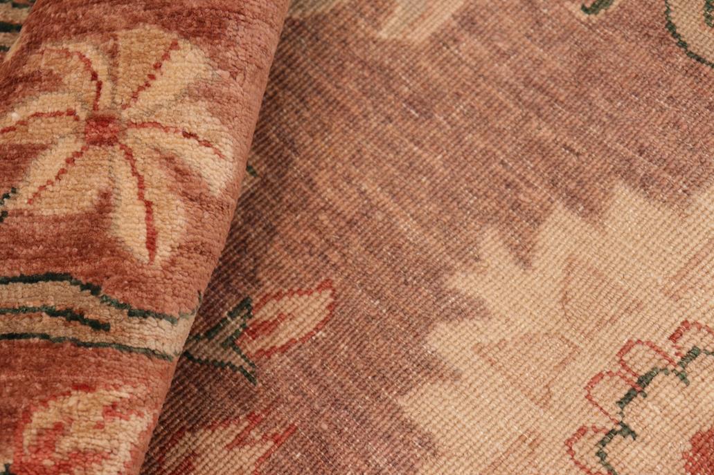 Enhance the ambiance of your home with this magnificent Persian-influenced Turkish hand-knotted rug made by skilled artisans capable of creating the most exceptional vegetable dyes and hand-spun wool. This exquisite handmade rug is a one-of-a-kind Peshawar Kafkaz, otherwise identified as Chobi, Chobi Peshawar, Oushak, or Ziegler rug. These handmade rugs are crafted in Pakistan utilizing superior-quality wool imported from Australia, New Zealand, and Korea in two types of weaves: the Persian weave and the Mori weave. This rug is meticulously crafted by hand using the finest natural vegetable dyes extracted from local plants. The artisans use a blend of hand-spun local and fine merino wool, resulting in a rug with a compelling texture, higher lanolin content, and longer staple. The artisans occasionally incorporate natural or artificial silk into the pile to enhance specific motifs. The finished product is an awe-inspiring flawless design execution and an understated palette that exudes elegance. Contemporary Peshawar rugs draw inspiration from antique Persian designs and feature modern design motifs with vibrant color tones. Hand-knotted with all-natural dyes, resulting in a unique abrash effect and subtle color variations in the pile. Peshawar rugs are known for their stunning and vibrant colors, which were achieved through a process inspired by antique methods. The rug's pile is meticulously trimmed to a moderate thickness and then stone-washed and sun-dried, resulting in a natural sheen and pleasing color tones. Transform the ambiance of your room into a luxurious haven with this gorgeous rug featuring a beautiful color palette. This stunning rug features an intricate oriental design that showcases royalty and seamlessly complements any decor. Its hand-knotted construction and natural fibers provide a soft and comfortable feel underfoot, making it the perfect addition to any room.