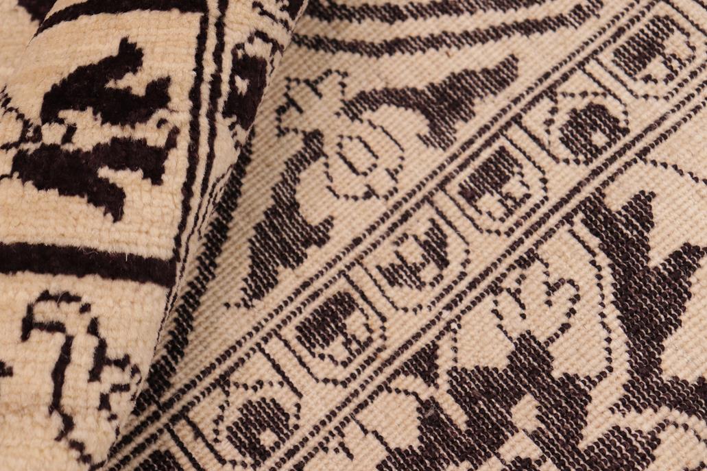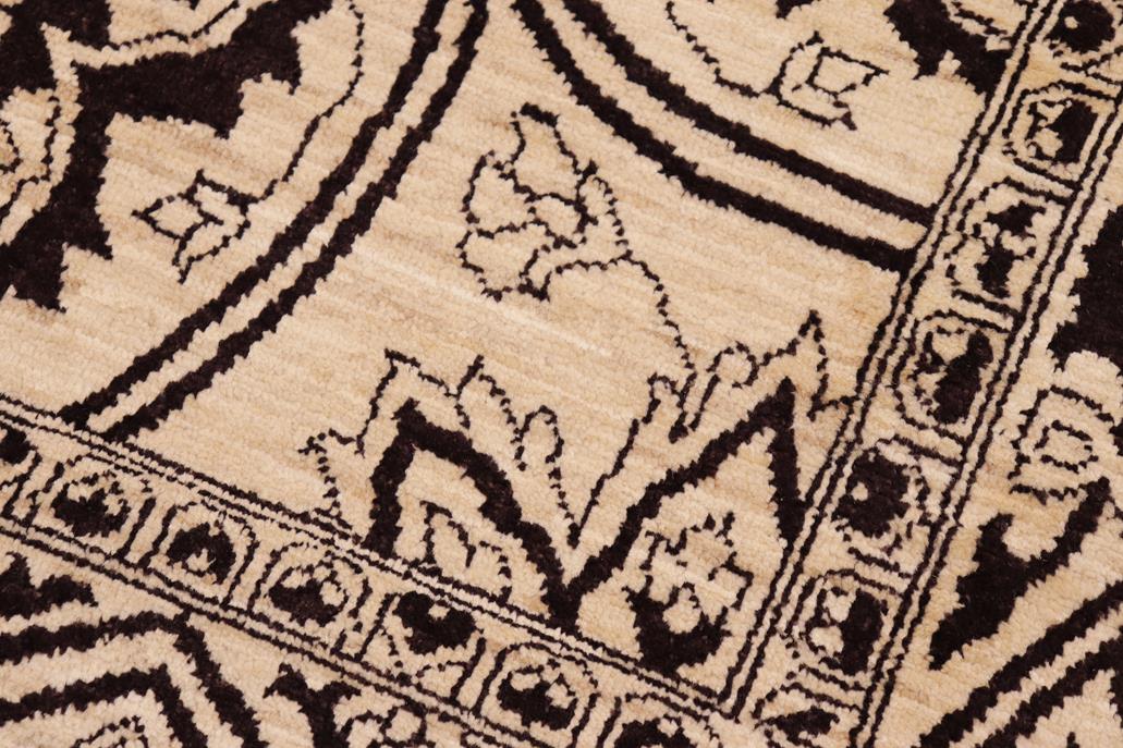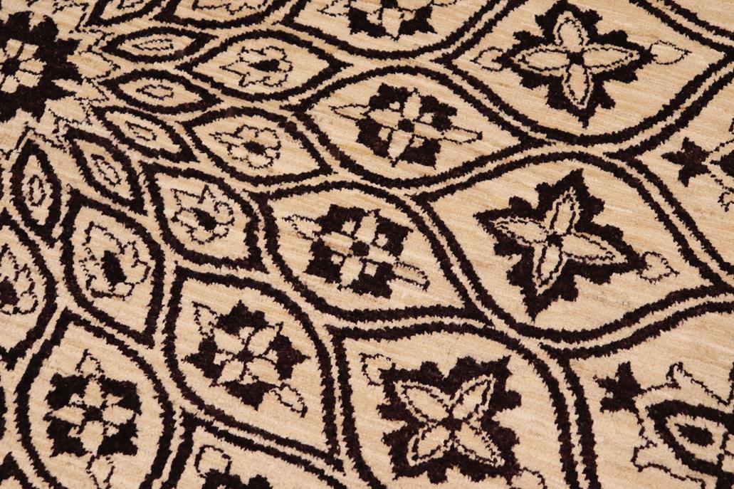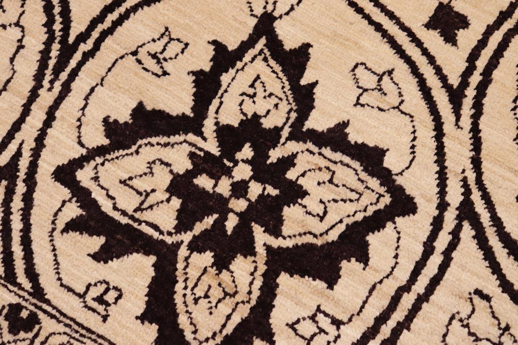 Enhance the ambiance of your home with this magnificent Persian-influenced Turkish hand-knotted rug made by skilled artisans capable of creating the most exceptional vegetable dyes and hand-spun wool. This exquisite handmade rug is a one-of-a-kind Peshawar Kafkaz, otherwise identified as Chobi, Chobi Peshawar, Oushak, or Ziegler rug. These handmade rugs are crafted in Pakistan utilizing superior-quality wool imported from Australia, New Zealand, and Korea in two types of weaves: the Persian weave and the Mori weave. This rug is meticulously crafted by hand using the finest natural vegetable dyes extracted from local plants. The artisans use a blend of hand-spun local and fine merino wool, resulting in a rug with a compelling texture, higher lanolin content, and longer staple. The artisans occasionally incorporate natural or artificial silk into the pile to enhance specific motifs. The finished product is an awe-inspiring flawless design execution and an understated palette that exudes elegance. Contemporary Peshawar rugs draw inspiration from antique Persian designs and feature modern design motifs with vibrant color tones. Hand-knotted with all-natural dyes, resulting in a unique abrash effect and subtle color variations in the pile. Peshawar rugs are known for their stunning and vibrant colors, which were achieved through a process inspired by antique methods. The rug's pile is meticulously trimmed to a moderate thickness and then stone-washed and sun-dried, resulting in a natural sheen and pleasing color tones. Transform the ambiance of your room into a luxurious haven with this gorgeous rug featuring a beautiful color palette. This stunning rug features an intricate oriental design that showcases royalty and seamlessly complements any decor. Its hand-knotted construction and natural fibers provide a soft and comfortable feel underfoot, making it the perfect addition to any room.