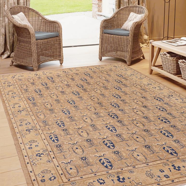 Classic Ziegler Lilly Tan/Blue Wool Rug - 8'4'' x 10'4''
