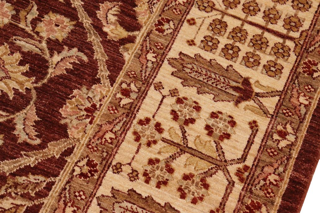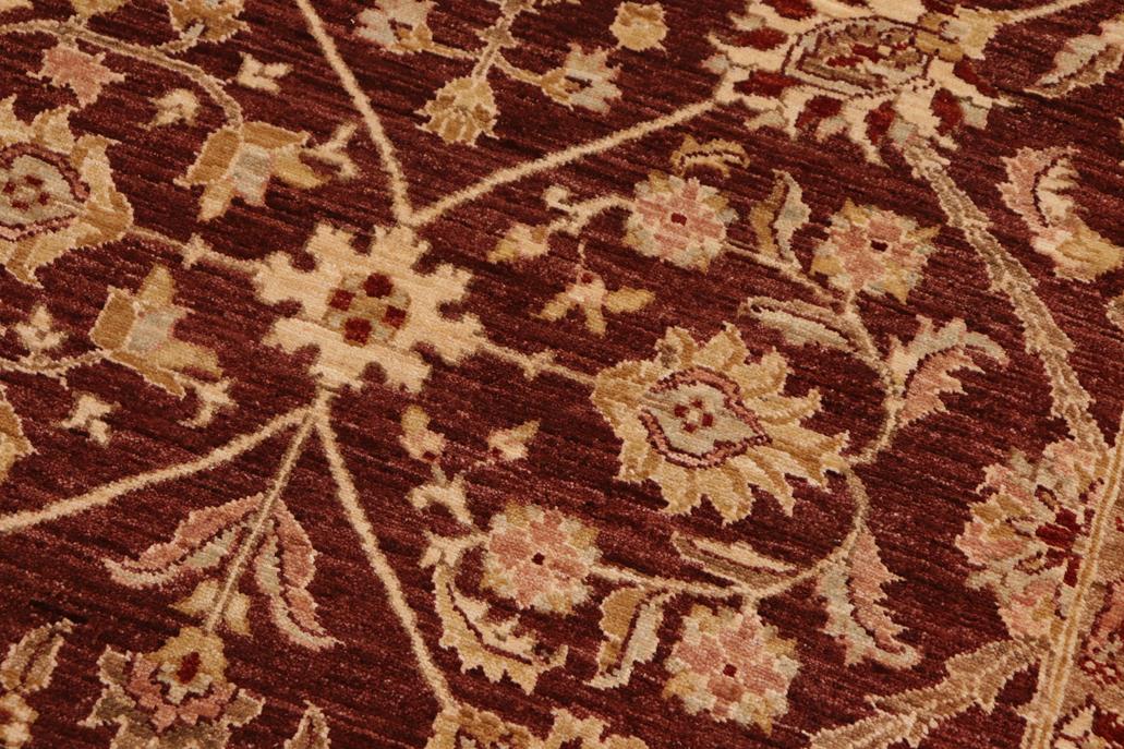 Enhance the ambiance of your home with this magnificent Persian-influenced Turkish hand-knotted rug made by skilled artisans capable of creating the most exceptional vegetable dyes and hand-spun wool. This exquisite handmade rug is a one-of-a-kind Peshawar Kafkaz, otherwise identified as Chobi, Chobi Peshawar, Oushak, or Ziegler rug. These handmade rugs are crafted in Pakistan utilizing superior-quality wool imported from Australia, New Zealand, and Korea in two types of weaves: the Persian weave and the Mori weave. This rug is meticulously crafted by hand using the finest natural vegetable dyes extracted from local plants. The artisans use a blend of hand-spun local and fine merino wool, resulting in a rug with a compelling texture, higher lanolin content, and longer staple. The artisans occasionally incorporate natural or artificial silk into the pile to enhance specific motifs. The finished product is an awe-inspiring flawless design execution and an understated palette that exudes elegance. Contemporary Peshawar rugs draw inspiration from antique Persian designs and feature modern design motifs with vibrant color tones. Hand-knotted with all-natural dyes, resulting in a unique abrash effect and subtle color variations in the pile. Peshawar rugs are known for their stunning and vibrant colors, which were achieved through a process inspired by antique methods. The rug's pile is meticulously trimmed to a moderate thickness and then stone-washed and sun-dried, resulting in a natural sheen and pleasing color tones. Transform the ambiance of your room into a luxurious haven with this gorgeous rug featuring a beautiful color palette. This stunning rug features an intricate oriental design that showcases royalty and seamlessly complements any decor. Its hand-knotted construction and natural fibers provide a soft and comfortable feel underfoot, making it the perfect addition to any room.