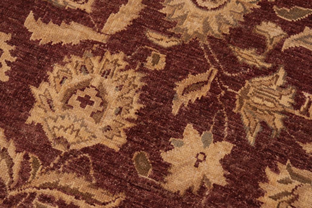 Enhance the ambiance of your home with this magnificent Persian-influenced Turkish hand-knotted rug made by skilled artisans capable of creating the most exceptional vegetable dyes and hand-spun wool. This exquisite handmade rug is a one-of-a-kind Peshawar Kafkaz, otherwise identified as Chobi, Chobi Peshawar, Oushak, or Ziegler rug. These handmade rugs are crafted in Pakistan utilizing superior-quality wool imported from Australia, New Zealand, and Korea in two types of weaves: the Persian weave and the Mori weave. This rug is meticulously crafted by hand using the finest natural vegetable dyes extracted from local plants. The artisans use a blend of hand-spun local and fine merino wool, resulting in a rug with a compelling texture, higher lanolin content, and longer staple. The artisans occasionally incorporate natural or artificial silk into the pile to enhance specific motifs. The finished product is an awe-inspiring flawless design execution and an understated palette that exudes elegance. Contemporary Peshawar rugs draw inspiration from antique Persian designs and feature modern design motifs with vibrant color tones. Hand-knotted with all-natural dyes, resulting in a unique abrash effect and subtle color variations in the pile. Peshawar rugs are known for their stunning and vibrant colors, which were achieved through a process inspired by antique methods. The rug's pile is meticulously trimmed to a moderate thickness and then stone-washed and sun-dried, resulting in a natural sheen and pleasing color tones. Transform the ambiance of your room into a luxurious haven with this gorgeous rug featuring a beautiful color palette. This stunning rug features an intricate oriental design that showcases royalty and seamlessly complements any decor. Its hand-knotted construction and natural fibers provide a soft and comfortable feel underfoot, making it the perfect addition to any room.