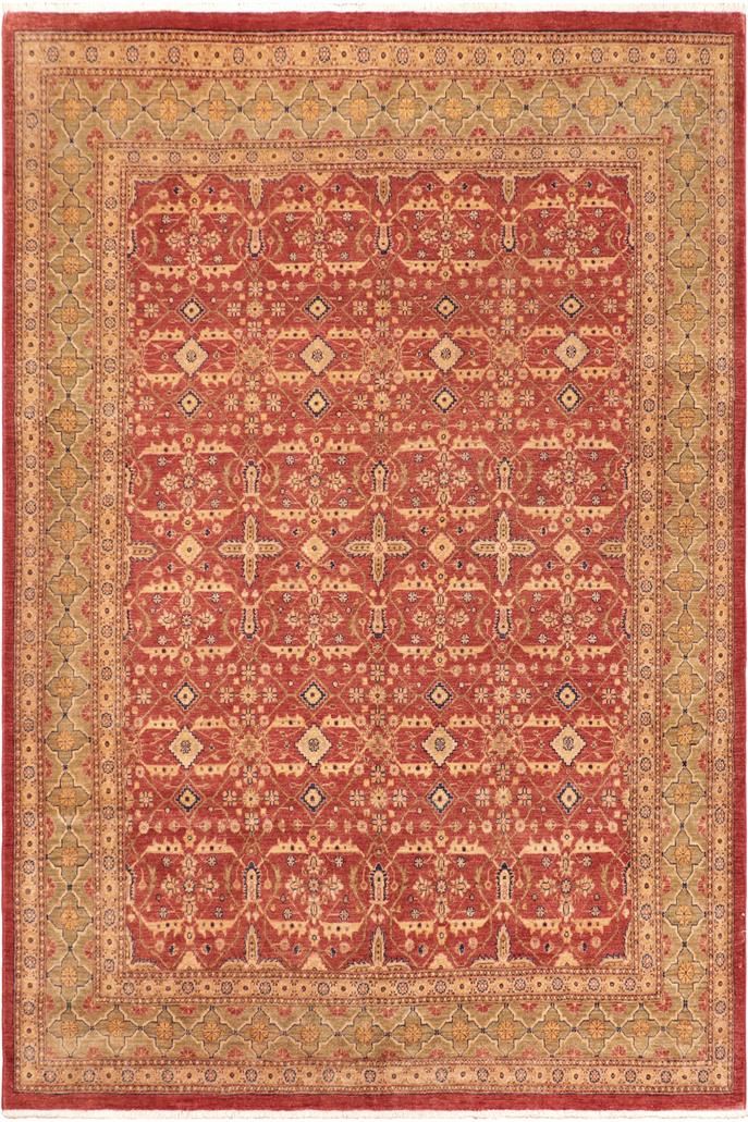 Shabby Chic Ziegler Lilia Red/Light Green Wool Rug - 7'10'' x 9'5''