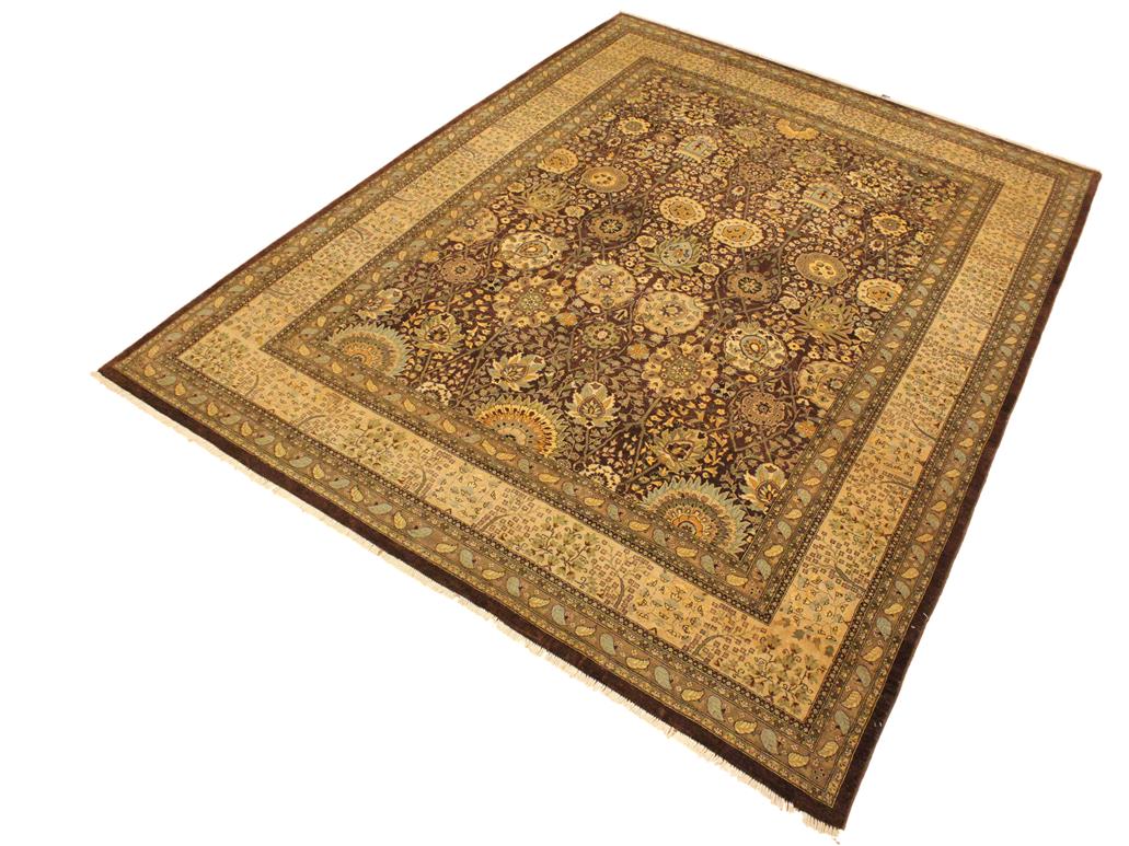 Turkish Knotted Istanbul Chasity Brown/Tan Wool Rug - 9'1'' x 11'11''