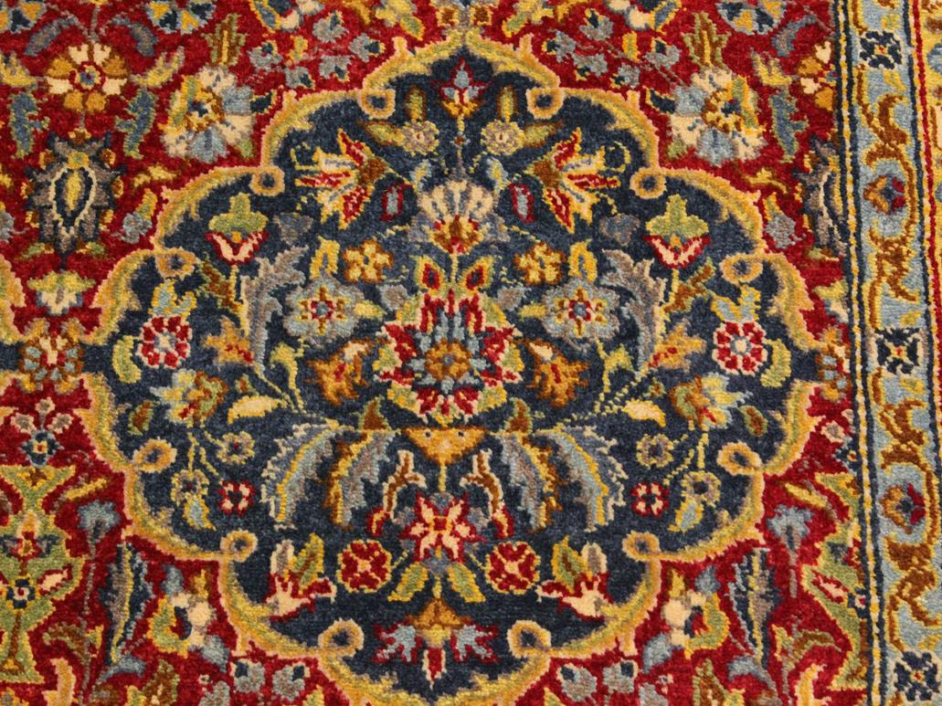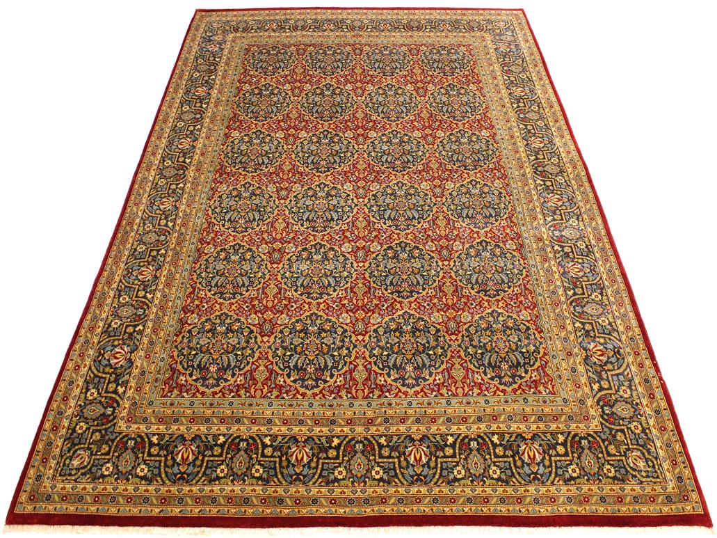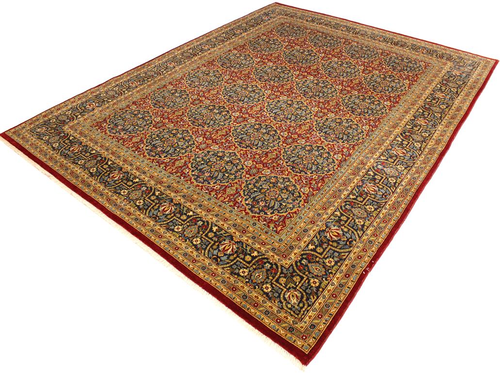 Designed with a mesmerizing intricate traditional motif this glorious hand knotted rug is a masterpiece that will fill any space with sophistication and grace. An exhilarating color pallet with an elaborate design, this masterpiece features luxurious hand spun wool with all vegetable dyes to add comfort and style to your decor. The design, color and beautiful chromatic composition with a sheen in traditional and transitional designs, exude beauty, elegance and quality make this rug a masterpiece of its own.