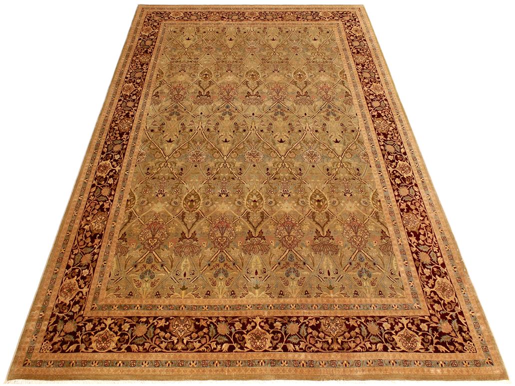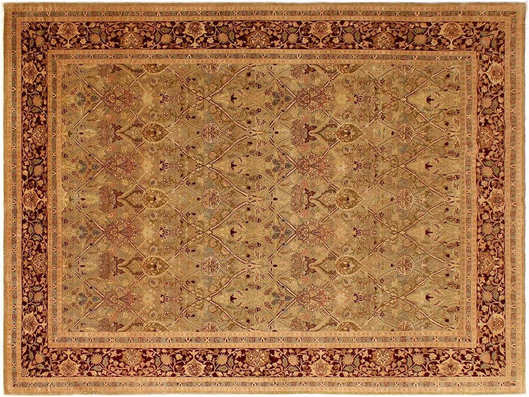 Turkish Knotted Istanbul Augusta Gold/Drk. Red Wool Rug - 9'0'' x 11'3''