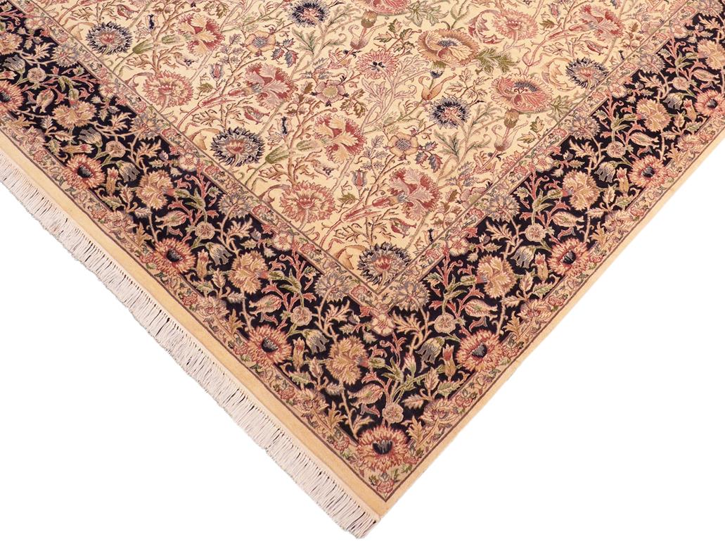 Designed with mesmerizing intricacy and gorgeous color palette, this hand-knotted masterpiece demonstrates the beauty and electrifying thrill of Pak Persian art. These meticulously hand-knotted Pak-Persian rug is made with pure wool and features breathtaking traditional, transitional, and tribal designs in bold luxurious color pallets. Known for their intricate designs these rugs are a reproduction of Persian rugs, made in Pakistan with unique Mughal designs. Made by master weavers using the same Persian texture, design and dying technique, we wanted to produce the most significant manifestation of Persian art, life, and culture. This rug is most famous for its exceptional quality, incredible designs, patterns, and vibrant rich color. Pak-Persian rugs made with Persian weave with high knot counts, which enables the high intricacy and detail found in the patterns are also referred to as "State of art", each color adds a rich beautiful detail in the artwork of this rug. The design, color, and beautiful chromatic composition with a vibrant sheen with intricate designs, exude beauty, elegance, and quality make this rug a masterpiece of its own.