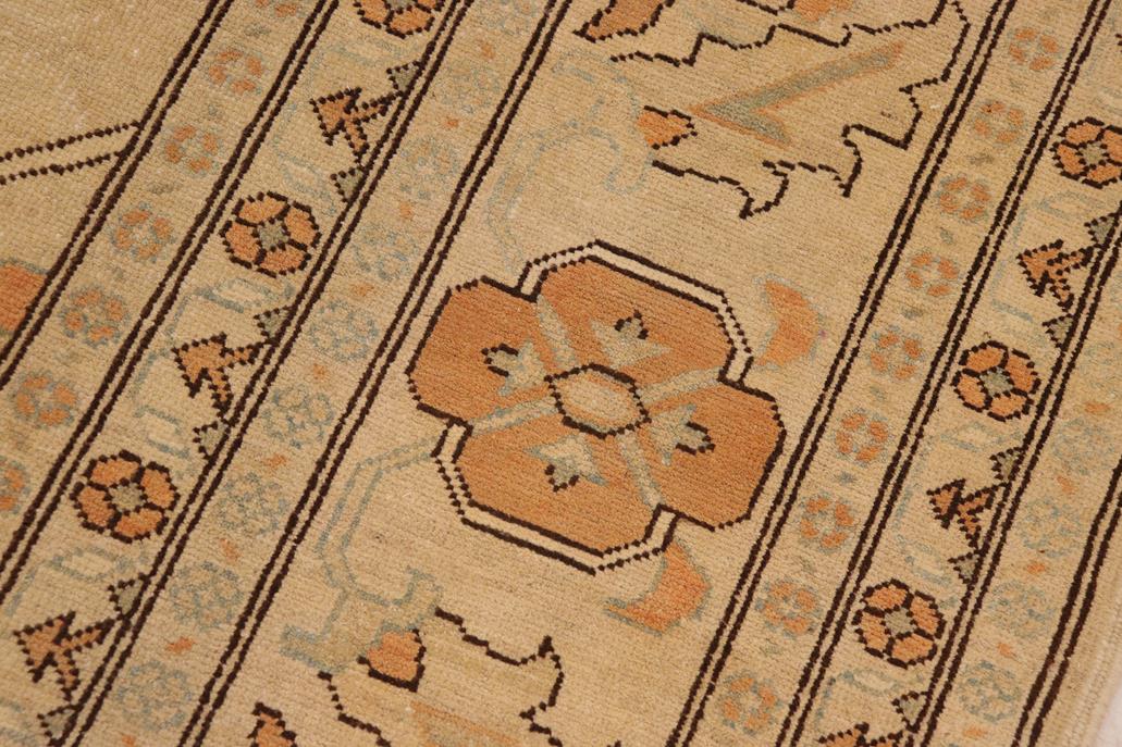 Enhance the ambiance of your home with this magnificent Persian-influenced Turkish hand-knotted rug made by skilled artisans capable of creating the most exceptional vegetable dyes and hand-spun wool. This exquisite handmade rug is a one-of-a-kind Peshawar Kafkaz, otherwise identified as Chobi, Chobi Peshawar, Oushak, or Ziegler rug. These handmade rugs are crafted in Pakistan utilizing superior-quality wool imported from Australia, New Zealand, and Korea in two types of weaves: the Persian weave and the Mori weave. This rug is meticulously crafted by hand using the finest natural vegetable dyes extracted from local plants. The artisans use a blend of hand-spun local and fine merino wool, resulting in a rug with a compelling texture, higher lanolin content, and longer staple. The artisans occasionally incorporate natural or artificial silk into the pile to enhance specific motifs. The finished product is an awe-inspiring flawless design execution and an understated palette that exudes elegance. Contemporary Peshawar rugs draw inspiration from antique Persian designs and feature modern design motifs with vibrant color tones. Hand-knotted with all-natural dyes, resulting in a unique abrash effect and subtle color variations in the pile. Peshawar rugs are known for their stunning and vibrant colors, which were achieved through a process inspired by antique methods. The rug's pile is meticulously trimmed to a moderate thickness and then stone-washed and sun-dried, resulting in a natural sheen and pleasing color tones. Transform the ambiance of your room into a luxurious haven with this gorgeous rug featuring a beautiful color palette. This stunning rug features an intricate oriental design that showcases royalty and seamlessly complements any decor. Its hand-knotted construction and natural fibers provide a soft and comfortable feel underfoot, making it the perfect addition to any room.