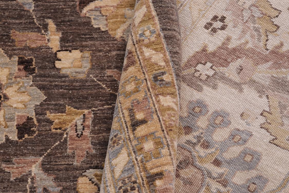 Enhance the ambiance of your home with this magnificent Persian-influenced Turkish hand-knotted rug made by skilled artisans capable of creating the most exceptional vegetable dyes and hand-spun wool. This exquisite handmade rug is a one-of-a-kind Peshawar Kafkaz, otherwise identified as Chobi, Chobi Peshawar, Oushak, or Ziegler rug. These handmade rugs are crafted in Pakistan utilizing superior-quality wool imported from Australia, New Zealand, and Korea in two types of weaves: the Persian weave and the Mori weave. This rug is meticulously crafted by hand using the finest natural vegetable dyes extracted from local plants. The artisans use a blend of hand-spun local and fine merino wool, resulting in a rug with a compelling texture, higher lanolin content, and longer staple. The artisans occasionally incorporate natural or artificial silk into the pile to enhance specific motifs. The finished product is an awe-inspiring flawless design execution and an understated palette that exudes elegance. Contemporary Peshawar rugs draw inspiration from antique Persian designs and feature modern design motifs with vibrant color tones. Hand-knotted with all-natural dyes, resulting in a unique abrash effect and subtle color variations in the pile. Peshawar rugs are known for their stunning and vibrant colors, which were achieved through a process inspired by antique methods. The rug's pile is meticulously trimmed to a moderate thickness and then stone-washed and sun-dried, resulting in a natural sheen and pleasing color tones. Transform the ambiance of your room into a luxurious haven with this gorgeous rug featuring a beautiful color palette. This stunning rug features an intricate oriental design that showcases royalty and seamlessly complements any decor. Its hand-knotted construction and natural fibers provide a soft and comfortable feel underfoot, making it the perfect addition to any room.