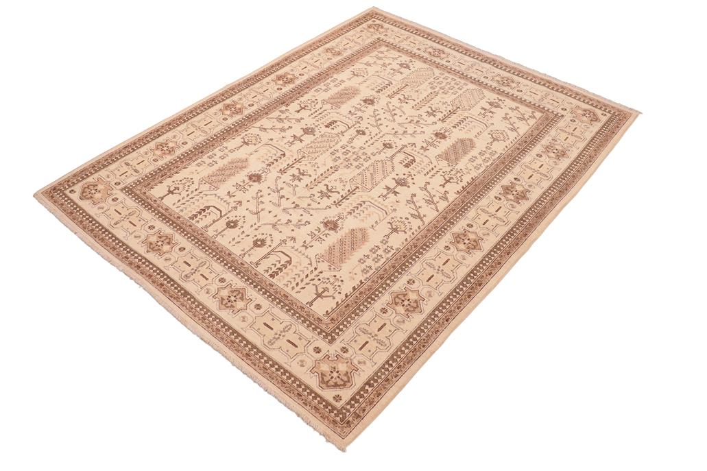 Eclectic Ziegler Natalya Beige/Brown Wool Rug - 6'0'' x 8'8''