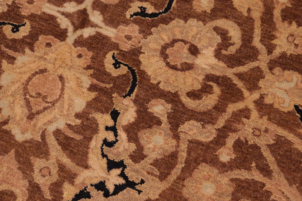 Enhance the ambiance of your home with this magnificent Persian-influenced Turkish hand-knotted rug made by skilled artisans capable of creating the most exceptional vegetable dyes and hand-spun wool. This exquisite handmade rug is a one-of-a-kind Peshawar Kafkaz, otherwise identified as Chobi, Chobi Peshawar, Oushak, or Ziegler rug. These handmade rugs are crafted in Pakistan utilizing superior-quality wool imported from Australia, New Zealand, and Korea in two types of weaves: the Persian weave and the Mori weave. This rug is meticulously crafted by hand using the finest natural vegetable dyes extracted from local plants. The artisans use a blend of hand-spun local and fine merino wool, resulting in a rug with a compelling texture, higher lanolin content, and longer staple. The artisans occasionally incorporate natural or artificial silk into the pile to enhance specific motifs. The finished product is an awe-inspiring flawless design execution and an understated palette that exudes elegance. Contemporary Peshawar rugs draw inspiration from antique Persian designs and feature modern design motifs with vibrant color tones. Hand-knotted with all-natural dyes, resulting in a unique abrash effect and subtle color variations in the pile. Peshawar rugs are known for their stunning and vibrant colors, which were achieved through a process inspired by antique methods. The rug's pile is meticulously trimmed to a moderate thickness and then stone-washed and sun-dried, resulting in a natural sheen and pleasing color tones. Transform the ambiance of your room into a luxurious haven with this gorgeous rug featuring a beautiful color palette. This stunning rug features an intricate oriental design that showcases royalty and seamlessly complements any decor. Its hand-knotted construction and natural fibers provide a soft and comfortable feel underfoot, making it the perfect addition to any room.