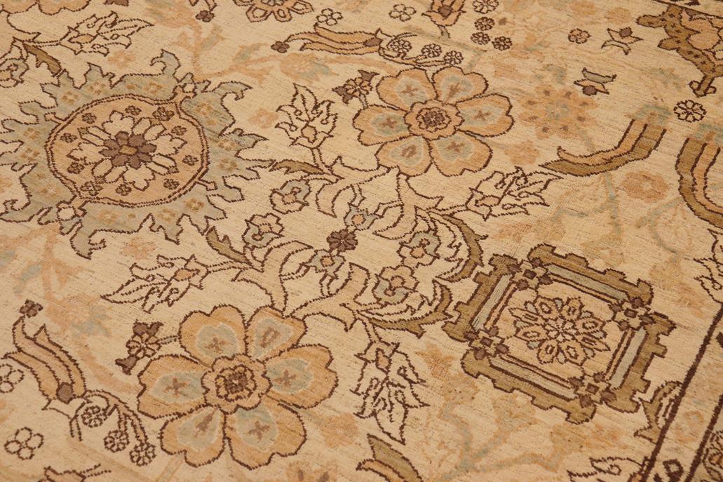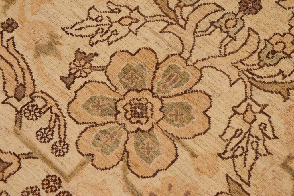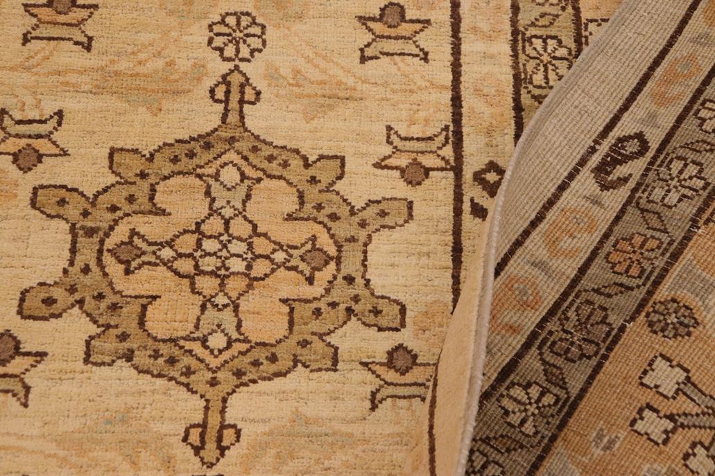 Enhance the ambiance of your home with this magnificent Persian-influenced Turkish hand-knotted rug made by skilled artisans capable of creating the most exceptional vegetable dyes and hand-spun wool. This exquisite handmade rug is a one-of-a-kind Peshawar Kafkaz, otherwise identified as Chobi, Chobi Peshawar, Oushak, or Ziegler rug. These handmade rugs are crafted in Pakistan utilizing superior-quality wool imported from Australia, New Zealand, and Korea in two types of weaves: the Persian weave and the Mori weave. This rug is meticulously crafted by hand using the finest natural vegetable dyes extracted from local plants. The artisans use a blend of hand-spun local and fine merino wool, resulting in a rug with a compelling texture, higher lanolin content, and longer staple. The artisans occasionally incorporate natural or artificial silk into the pile to enhance specific motifs. The finished product is an awe-inspiring flawless design execution and an understated palette that exudes elegance. Contemporary Peshawar rugs draw inspiration from antique Persian designs and feature modern design motifs with vibrant color tones. Hand-knotted with all-natural dyes, resulting in a unique abrash effect and subtle color variations in the pile. Peshawar rugs are known for their stunning and vibrant colors, which were achieved through a process inspired by antique methods. The rug's pile is meticulously trimmed to a moderate thickness and then stone-washed and sun-dried, resulting in a natural sheen and pleasing color tones. Transform the ambiance of your room into a luxurious haven with this gorgeous rug featuring a beautiful color palette. This stunning rug features an intricate oriental design that showcases royalty and seamlessly complements any decor. Its hand-knotted construction and natural fibers provide a soft and comfortable feel underfoot, making it the perfect addition to any room.