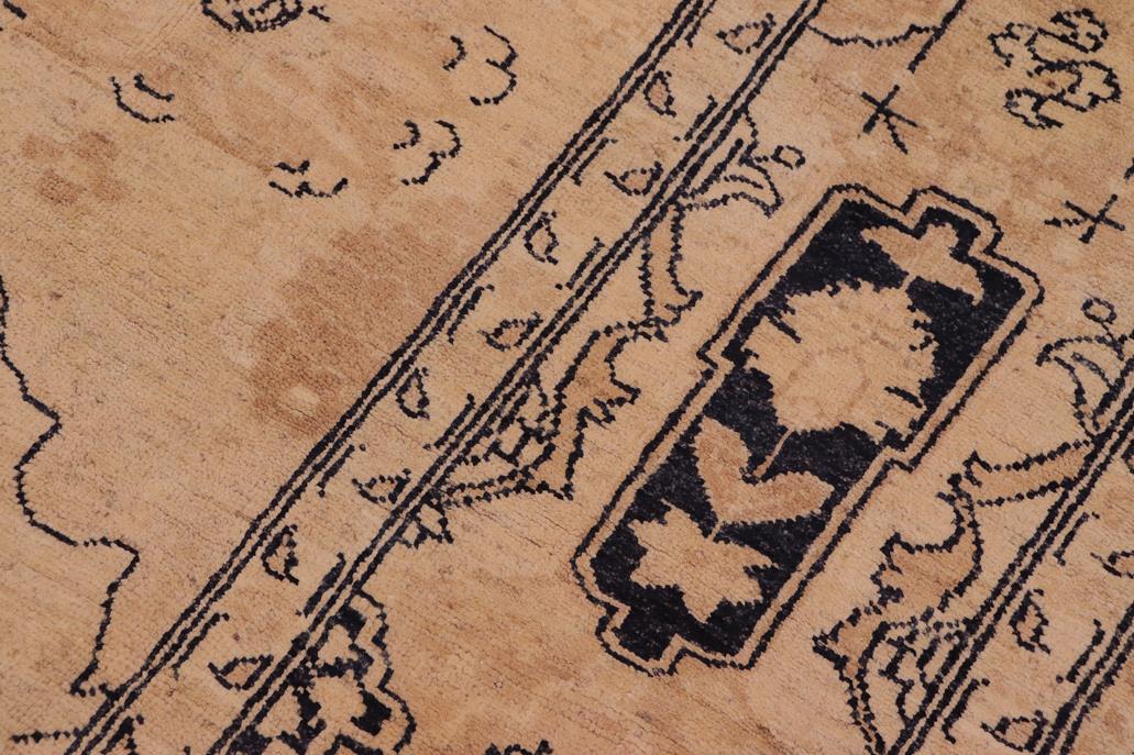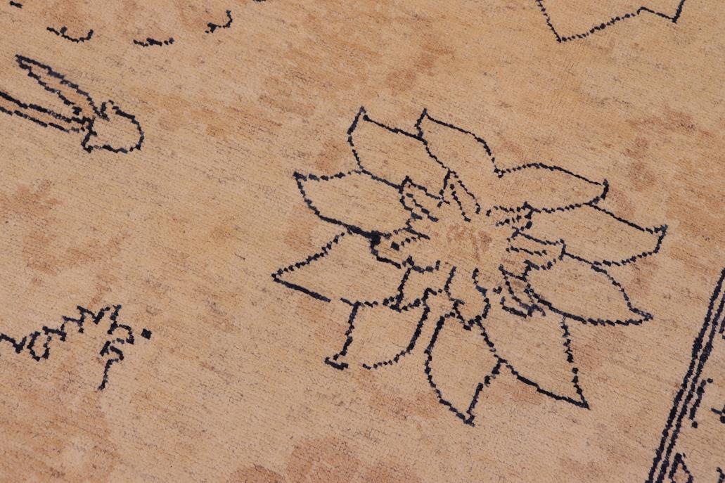 Enhance the ambiance of your home with this magnificent Persian-influenced Turkish hand-knotted rug made by skilled artisans capable of creating the most exceptional vegetable dyes and hand-spun wool. This exquisite handmade rug is a one-of-a-kind Peshawar Kafkaz, otherwise identified as Chobi, Chobi Peshawar, Oushak, or Ziegler rug. These handmade rugs are crafted in Pakistan utilizing superior-quality wool imported from Australia, New Zealand, and Korea in two types of weaves: the Persian weave and the Mori weave. This rug is meticulously crafted by hand using the finest natural vegetable dyes extracted from local plants. The artisans use a blend of hand-spun local and fine merino wool, resulting in a rug with a compelling texture, higher lanolin content, and longer staple. The artisans occasionally incorporate natural or artificial silk into the pile to enhance specific motifs. The finished product is an awe-inspiring flawless design execution and an understated palette that exudes elegance. Contemporary Peshawar rugs draw inspiration from antique Persian designs and feature modern design motifs with vibrant color tones. Hand-knotted with all-natural dyes, resulting in a unique abrash effect and subtle color variations in the pile. Peshawar rugs are known for their stunning and vibrant colors, which were achieved through a process inspired by antique methods. The rug's pile is meticulously trimmed to a moderate thickness and then stone-washed and sun-dried, resulting in a natural sheen and pleasing color tones. Transform the ambiance of your room into a luxurious haven with this gorgeous rug featuring a beautiful color palette. This stunning rug features an intricate oriental design that showcases royalty and seamlessly complements any decor. Its hand-knotted construction and natural fibers provide a soft and comfortable feel underfoot, making it the perfect addition to any room.