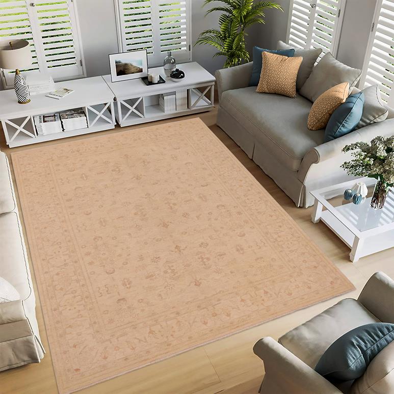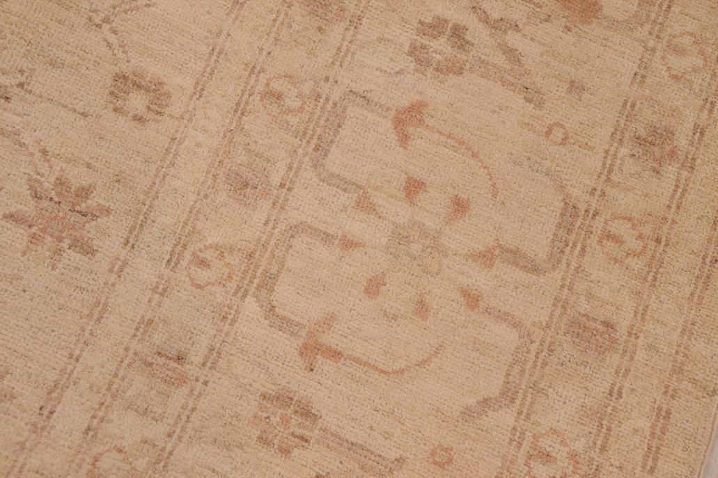 Enhance the ambiance of your home with this magnificent Persian-influenced Turkish hand-knotted rug made by skilled artisans capable of creating the most exceptional vegetable dyes and hand-spun wool. This exquisite handmade rug is a one-of-a-kind Peshawar Kafkaz, otherwise identified as Chobi, Chobi Peshawar, Oushak, or Ziegler rug. These handmade rugs are crafted in Pakistan utilizing superior-quality wool imported from Australia, New Zealand, and Korea in two types of weaves: the Persian weave and the Mori weave. This rug is meticulously crafted by hand using the finest natural vegetable dyes extracted from local plants. The artisans use a blend of hand-spun local and fine merino wool, resulting in a rug with a compelling texture, higher lanolin content, and longer staple. The artisans occasionally incorporate natural or artificial silk into the pile to enhance specific motifs. The finished product is an awe-inspiring flawless design execution and an understated palette that exudes elegance. Contemporary Peshawar rugs draw inspiration from antique Persian designs and feature modern design motifs with vibrant color tones. Hand-knotted with all-natural dyes, resulting in a unique abrash effect and subtle color variations in the pile. Peshawar rugs are known for their stunning and vibrant colors, which were achieved through a process inspired by antique methods. The rug's pile is meticulously trimmed to a moderate thickness and then stone-washed and sun-dried, resulting in a natural sheen and pleasing color tones. Transform the ambiance of your room into a luxurious haven with this gorgeous rug featuring a beautiful color palette. This stunning rug features an intricate oriental design that showcases royalty and seamlessly complements any decor. Its hand-knotted construction and natural fibers provide a soft and comfortable feel underfoot, making it the perfect addition to any room.