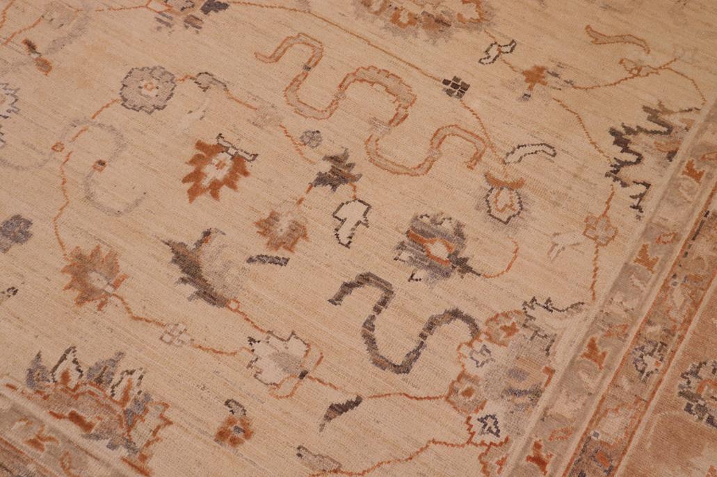 Enhance the ambiance of your home with this magnificent Persian-influenced Turkish hand-knotted rug made by skilled artisans capable of creating the most exceptional vegetable dyes and hand-spun wool. This exquisite handmade rug is a one-of-a-kind Peshawar Kafkaz, otherwise identified as Chobi, Chobi Peshawar, Oushak, or Ziegler rug. These handmade rugs are crafted in Pakistan utilizing superior-quality wool imported from Australia, New Zealand, and Korea in two types of weaves: the Persian weave and the Mori weave. This rug is meticulously crafted by hand using the finest natural vegetable dyes extracted from local plants. The artisans use a blend of hand-spun local and fine merino wool, resulting in a rug with a compelling texture, higher lanolin content, and longer staple. The artisans occasionally incorporate natural or artificial silk into the pile to enhance specific motifs. The finished product is an awe-inspiring flawless design execution and an understated palette that exudes elegance. Contemporary Peshawar rugs draw inspiration from antique Persian designs and feature modern design motifs with vibrant color tones. Hand-knotted with all-natural dyes, resulting in a unique abrash effect and subtle color variations in the pile. Peshawar rugs are known for their stunning and vibrant colors, which were achieved through a process inspired by antique methods. The rug's pile is meticulously trimmed to a moderate thickness and then stone-washed and sun-dried, resulting in a natural sheen and pleasing color tones. Transform the ambiance of your room into a luxurious haven with this gorgeous rug featuring a beautiful color palette. This stunning rug features an intricate oriental design that showcases royalty and seamlessly complements any decor. Its hand-knotted construction and natural fibers provide a soft and comfortable feel underfoot, making it the perfect addition to any room.