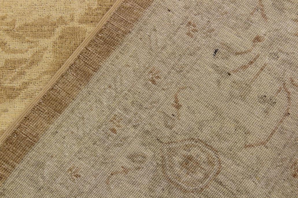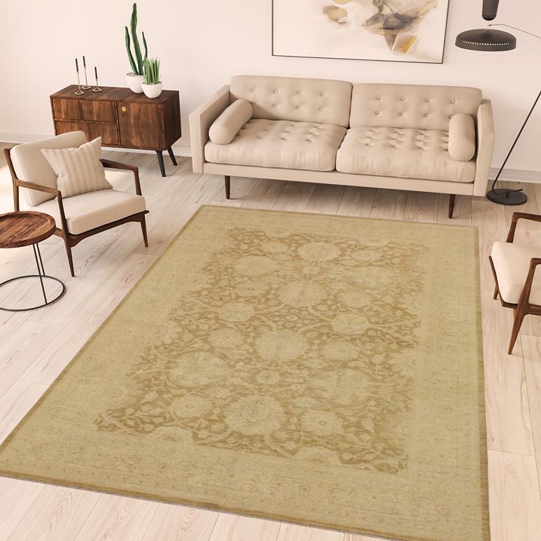 Enhance the ambiance of your home with this magnificent Persian-influenced Turkish hand-knotted rug made by skilled artisans capable of creating the most exceptional vegetable dyes and hand-spun wool. This exquisite handmade rug is a one-of-a-kind Peshawar Kafkaz, otherwise identified as Chobi, Chobi Peshawar, Oushak, or Ziegler rug. These handmade rugs are crafted in Pakistan utilizing superior-quality wool imported from Australia, New Zealand, and Korea in two types of weaves: the Persian weave and the Mori weave. This rug is meticulously crafted by hand using the finest natural vegetable dyes extracted from local plants. The artisans use a blend of hand-spun local and fine merino wool, resulting in a rug with a compelling texture, higher lanolin content, and longer staple. The artisans occasionally incorporate natural or artificial silk into the pile to enhance specific motifs. The finished product is an awe-inspiring flawless design execution and an understated palette that exudes elegance. Contemporary Peshawar rugs draw inspiration from antique Persian designs and feature modern design motifs with vibrant color tones. Hand-knotted with all-natural dyes, resulting in a unique abrash effect and subtle color variations in the pile. Peshawar rugs are known for their stunning and vibrant colors, which were achieved through a process inspired by antique methods. The rug's pile is meticulously trimmed to a moderate thickness and then stone-washed and sun-dried, resulting in a natural sheen and pleasing color tones. Transform the ambiance of your room into a luxurious haven with this gorgeous rug featuring a beautiful color palette. This stunning rug features an intricate oriental design that showcases royalty and seamlessly complements any decor. Its hand-knotted construction and natural fibers provide a soft and comfortable feel underfoot, making it the perfect addition to any room.