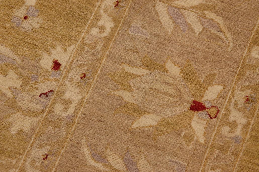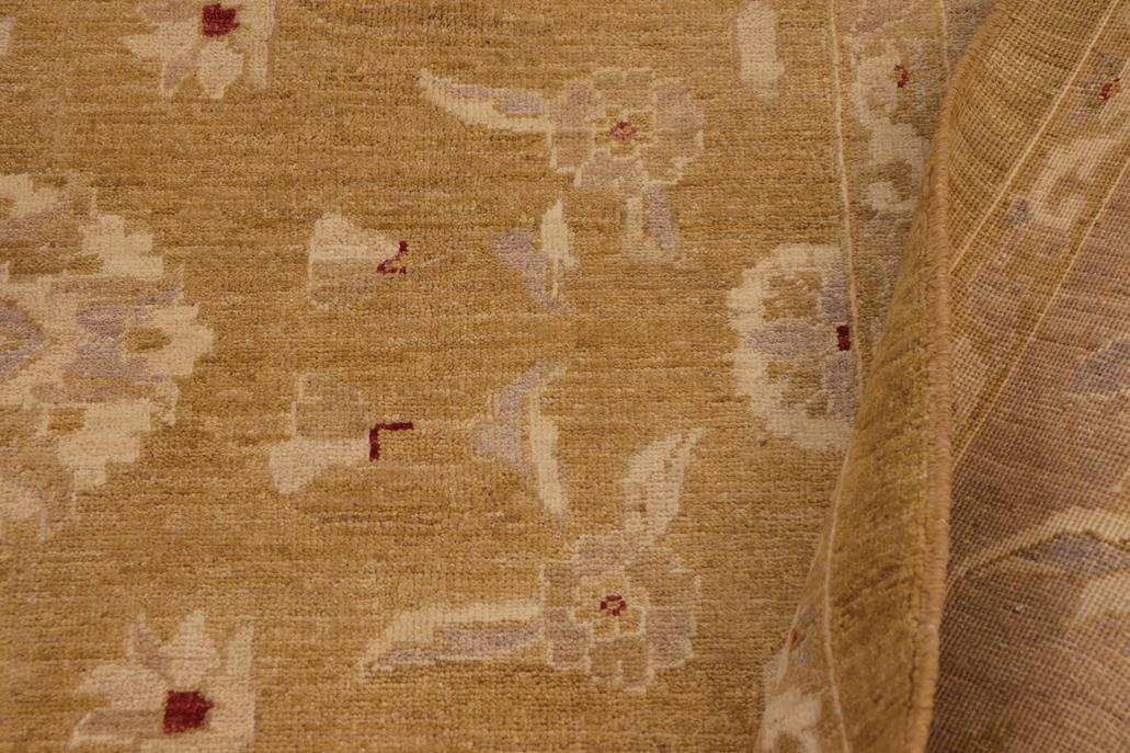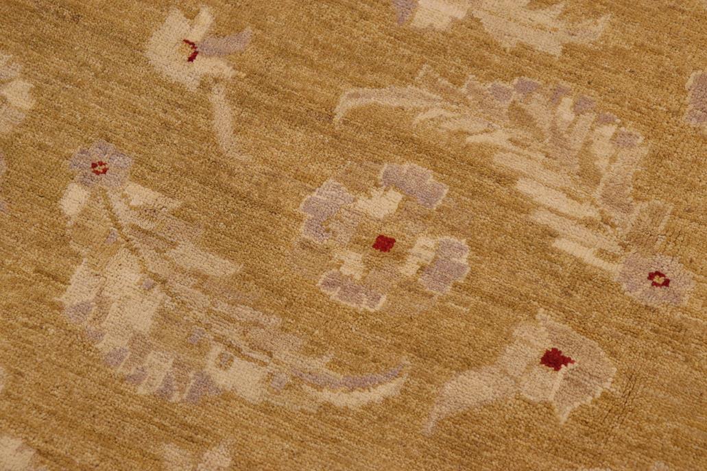 Enhance the ambiance of your home with this magnificent Persian-influenced Turkish hand-knotted rug made by skilled artisans capable of creating the most exceptional vegetable dyes and hand-spun wool. This exquisite handmade rug is a one-of-a-kind Peshawar Kafkaz, otherwise identified as Chobi, Chobi Peshawar, Oushak, or Ziegler rug. These handmade rugs are crafted in Pakistan utilizing superior-quality wool imported from Australia, New Zealand, and Korea in two types of weaves: the Persian weave and the Mori weave. This rug is meticulously crafted by hand using the finest natural vegetable dyes extracted from local plants. The artisans use a blend of hand-spun local and fine merino wool, resulting in a rug with a compelling texture, higher lanolin content, and longer staple. The artisans occasionally incorporate natural or artificial silk into the pile to enhance specific motifs. The finished product is an awe-inspiring flawless design execution and an understated palette that exudes elegance. Contemporary Peshawar rugs draw inspiration from antique Persian designs and feature modern design motifs with vibrant color tones. Hand-knotted with all-natural dyes, resulting in a unique abrash effect and subtle color variations in the pile. Peshawar rugs are known for their stunning and vibrant colors, which were achieved through a process inspired by antique methods. The rug's pile is meticulously trimmed to a moderate thickness and then stone-washed and sun-dried, resulting in a natural sheen and pleasing color tones. Transform the ambiance of your room into a luxurious haven with this gorgeous rug featuring a beautiful color palette. This stunning rug features an intricate oriental design that showcases royalty and seamlessly complements any decor. Its hand-knotted construction and natural fibers provide a soft and comfortable feel underfoot, making it the perfect addition to any room.