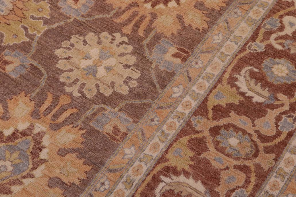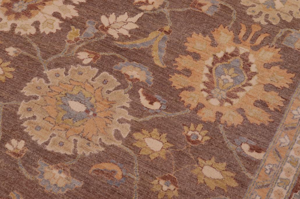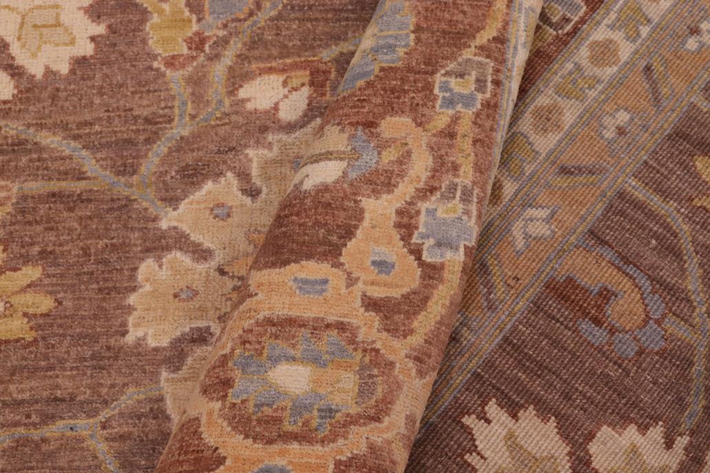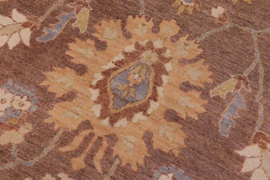 Enhance the ambiance of your home with this magnificent Persian-influenced Turkish hand-knotted rug made by skilled artisans capable of creating the most exceptional vegetable dyes and hand-spun wool. This exquisite handmade rug is a one-of-a-kind Peshawar Kafkaz, otherwise identified as Chobi, Chobi Peshawar, Oushak, or Ziegler rug. These handmade rugs are crafted in Pakistan utilizing superior-quality wool imported from Australia, New Zealand, and Korea in two types of weaves: the Persian weave and the Mori weave. This rug is meticulously crafted by hand using the finest natural vegetable dyes extracted from local plants. The artisans use a blend of hand-spun local and fine merino wool, resulting in a rug with a compelling texture, higher lanolin content, and longer staple. The artisans occasionally incorporate natural or artificial silk into the pile to enhance specific motifs. The finished product is an awe-inspiring flawless design execution and an understated palette that exudes elegance. Contemporary Peshawar rugs draw inspiration from antique Persian designs and feature modern design motifs with vibrant color tones. Hand-knotted with all-natural dyes, resulting in a unique abrash effect and subtle color variations in the pile. Peshawar rugs are known for their stunning and vibrant colors, which were achieved through a process inspired by antique methods. The rug's pile is meticulously trimmed to a moderate thickness and then stone-washed and sun-dried, resulting in a natural sheen and pleasing color tones. Transform the ambiance of your room into a luxurious haven with this gorgeous rug featuring a beautiful color palette. This stunning rug features an intricate oriental design that showcases royalty and seamlessly complements any decor. Its hand-knotted construction and natural fibers provide a soft and comfortable feel underfoot, making it the perfect addition to any room.