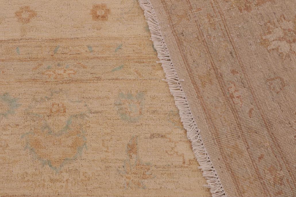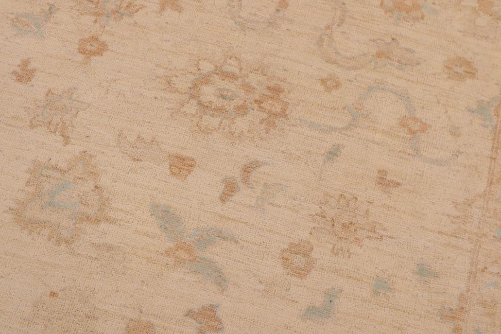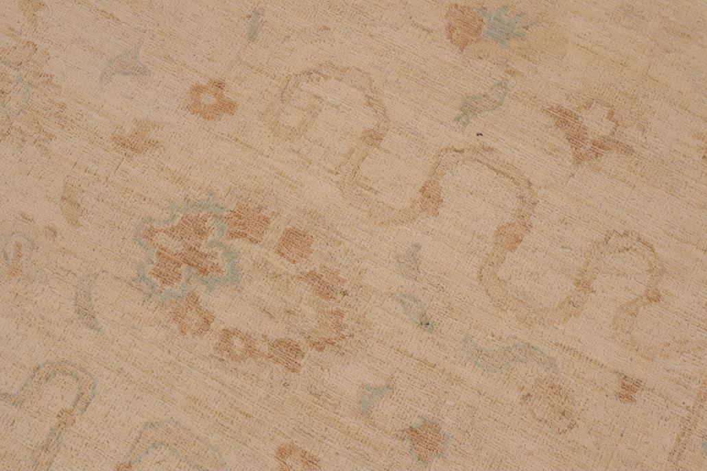 Enhance the ambiance of your home with this magnificent Persian-influenced Turkish hand-knotted rug made by skilled artisans capable of creating the most exceptional vegetable dyes and hand-spun wool. This exquisite handmade rug is a one-of-a-kind Peshawar Kafkaz, otherwise identified as Chobi, Chobi Peshawar, Oushak, or Ziegler rug. These handmade rugs are crafted in Pakistan utilizing superior-quality wool imported from Australia, New Zealand, and Korea in two types of weaves: the Persian weave and the Mori weave. This rug is meticulously crafted by hand using the finest natural vegetable dyes extracted from local plants. The artisans use a blend of hand-spun local and fine merino wool, resulting in a rug with a compelling texture, higher lanolin content, and longer staple. The artisans occasionally incorporate natural or artificial silk into the pile to enhance specific motifs. The finished product is an awe-inspiring flawless design execution and an understated palette that exudes elegance. Contemporary Peshawar rugs draw inspiration from antique Persian designs and feature modern design motifs with vibrant color tones. Hand-knotted with all-natural dyes, resulting in a unique abrash effect and subtle color variations in the pile. Peshawar rugs are known for their stunning and vibrant colors, which were achieved through a process inspired by antique methods. The rug's pile is meticulously trimmed to a moderate thickness and then stone-washed and sun-dried, resulting in a natural sheen and pleasing color tones. Transform the ambiance of your room into a luxurious haven with this gorgeous rug featuring a beautiful color palette. This stunning rug features an intricate oriental design that showcases royalty and seamlessly complements any decor. Its hand-knotted construction and natural fibers provide a soft and comfortable feel underfoot, making it the perfect addition to any room.