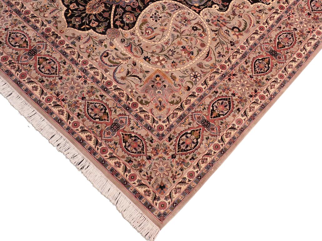 Designed with mesmerizing intricacy and gorgeous color palette, this hand-knotted masterpiece demonstrates the beauty and electrifying thrill of Pak Persian art. These meticulously hand-knotted Pak-Persian rug is made with pure wool and features breathtaking traditional, transitional, and tribal designs in bold luxurious color pallets. Known for their intricate designs these rugs are a reproduction of Persian rugs, made in Pakistan with unique Mughal designs. Made by master weavers using the same Persian texture, design and dying technique, we wanted to produce the most significant manifestation of Persian art, life, and culture. This rug is most famous for its exceptional quality, incredible designs, patterns, and vibrant rich color. Pak-Persian rugs made with Persian weave with high knot counts, which enables the high intricacy and detail found in the patterns are also referred to as "State of art", each color adds a rich beautiful detail in the artwork of this rug. The design, color, and beautiful chromatic composition with a vibrant sheen with intricate designs, exude beauty, elegance, and quality make this rug a masterpiece of its own.