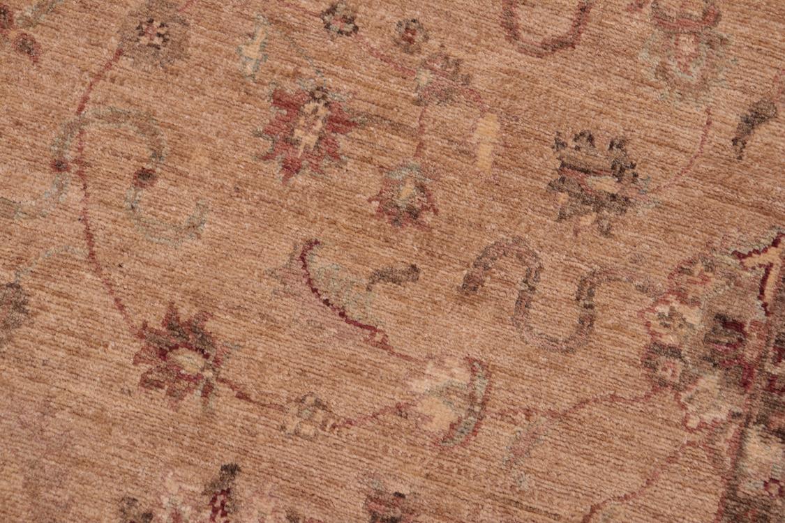 Enhance the ambiance of your home with this magnificent Persian-influenced Turkish hand-knotted rug made by skilled artisans capable of creating the most exceptional vegetable dyes and hand-spun wool. This exquisite handmade rug is a one-of-a-kind Peshawar Kafkaz, otherwise identified as Chobi, Chobi Peshawar, Oushak, or Ziegler rug. These handmade rugs are crafted in Pakistan utilizing superior-quality wool imported from Australia, New Zealand, and Korea in two types of weaves: the Persian weave and the Mori weave. This rug is meticulously crafted by hand using the finest natural vegetable dyes extracted from local plants. The artisans use a blend of hand-spun local and fine merino wool, resulting in a rug with a compelling texture, higher lanolin content, and longer staple. The artisans occasionally incorporate natural or artificial silk into the pile to enhance specific motifs. The finished product is an awe-inspiring flawless design execution and an understated palette that exudes elegance. Contemporary Peshawar rugs draw inspiration from antique Persian designs and feature modern design motifs with vibrant color tones. Hand-knotted with all-natural dyes, resulting in a unique abrash effect and subtle color variations in the pile. Peshawar rugs are known for their stunning and vibrant colors, which were achieved through a process inspired by antique methods. The rug's pile is meticulously trimmed to a moderate thickness and then stone-washed and sun-dried, resulting in a natural sheen and pleasing color tones. Transform the ambiance of your room into a luxurious haven with this gorgeous rug featuring a beautiful color palette. This stunning rug features an intricate oriental design that showcases royalty and seamlessly complements any decor. Its hand-knotted construction and natural fibers provide a soft and comfortable feel underfoot, making it the perfect addition to any room.