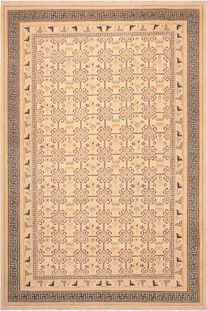 Shabby Chic Ziegler Buffy Beige/Green Wool Rug - 6'2'' x 9'3''