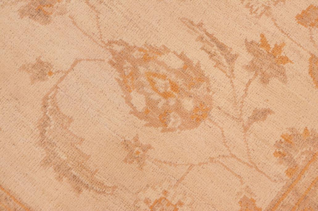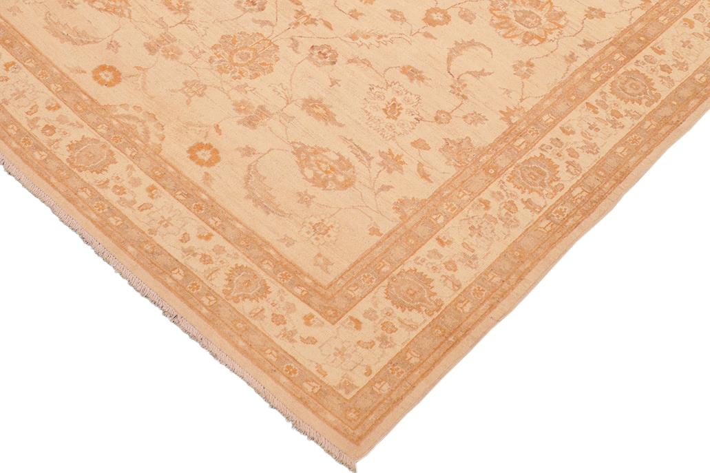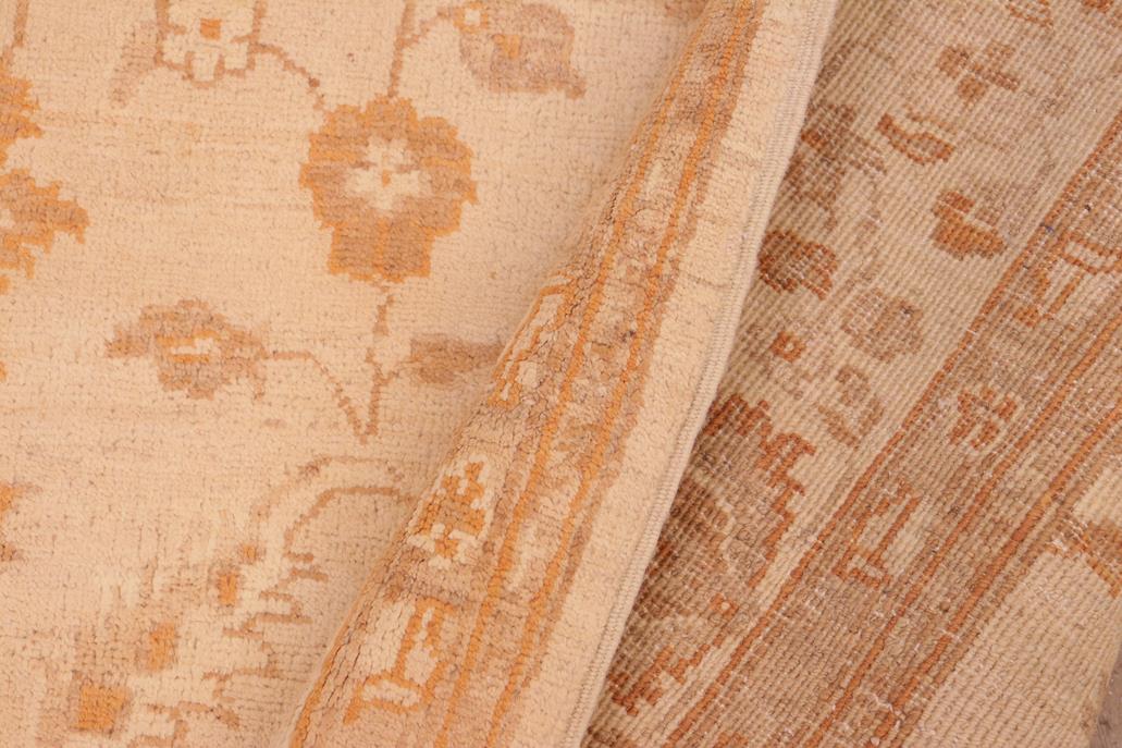 Enhance the ambiance of your home with this magnificent Persian-influenced Turkish hand-knotted rug made by skilled artisans capable of creating the most exceptional vegetable dyes and hand-spun wool. This exquisite handmade rug is a one-of-a-kind Peshawar Kafkaz, otherwise identified as Chobi, Chobi Peshawar, Oushak, or Ziegler rug. These handmade rugs are crafted in Pakistan utilizing superior-quality wool imported from Australia, New Zealand, and Korea in two types of weaves: the Persian weave and the Mori weave. This rug is meticulously crafted by hand using the finest natural vegetable dyes extracted from local plants. The artisans use a blend of hand-spun local and fine merino wool, resulting in a rug with a compelling texture, higher lanolin content, and longer staple. The artisans occasionally incorporate natural or artificial silk into the pile to enhance specific motifs. The finished product is an awe-inspiring flawless design execution and an understated palette that exudes elegance. Contemporary Peshawar rugs draw inspiration from antique Persian designs and feature modern design motifs with vibrant color tones. Hand-knotted with all-natural dyes, resulting in a unique abrash effect and subtle color variations in the pile. Peshawar rugs are known for their stunning and vibrant colors, which were achieved through a process inspired by antique methods. The rug's pile is meticulously trimmed to a moderate thickness and then stone-washed and sun-dried, resulting in a natural sheen and pleasing color tones. Transform the ambiance of your room into a luxurious haven with this gorgeous rug featuring a beautiful color palette. This stunning rug features an intricate oriental design that showcases royalty and seamlessly complements any decor. Its hand-knotted construction and natural fibers provide a soft and comfortable feel underfoot, making it the perfect addition to any room.