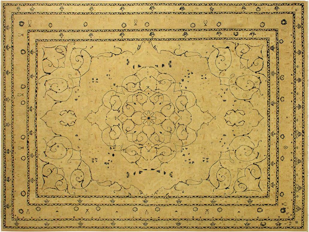 Turkish Knotted Istanbul Joana Tan/Tan Wool Rug - 9'1'' x 11'11''