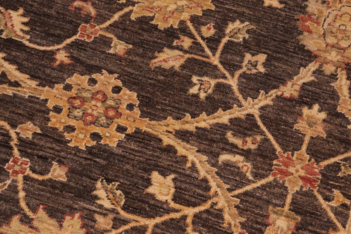 Enhance the ambiance of your home with this magnificent Persian-influenced Turkish hand-knotted rug made by skilled artisans capable of creating the most exceptional vegetable dyes and hand-spun wool. This exquisite handmade rug is a one-of-a-kind Peshawar Kafkaz, otherwise identified as Chobi, Chobi Peshawar, Oushak, or Ziegler rug. These handmade rugs are crafted in Pakistan utilizing superior-quality wool imported from Australia, New Zealand, and Korea in two types of weaves: the Persian weave and the Mori weave. This rug is meticulously crafted by hand using the finest natural vegetable dyes extracted from local plants. The artisans use a blend of hand-spun local and fine merino wool, resulting in a rug with a compelling texture, higher lanolin content, and longer staple. The artisans occasionally incorporate natural or artificial silk into the pile to enhance specific motifs. The finished product is an awe-inspiring flawless design execution and an understated palette that exudes elegance. Contemporary Peshawar rugs draw inspiration from antique Persian designs and feature modern design motifs with vibrant color tones. Hand-knotted with all-natural dyes, resulting in a unique abrash effect and subtle color variations in the pile. Peshawar rugs are known for their stunning and vibrant colors, which were achieved through a process inspired by antique methods. The rug's pile is meticulously trimmed to a moderate thickness and then stone-washed and sun-dried, resulting in a natural sheen and pleasing color tones. Transform the ambiance of your room into a luxurious haven with this gorgeous rug featuring a beautiful color palette. This stunning rug features an intricate oriental design that showcases royalty and seamlessly complements any decor. Its hand-knotted construction and natural fibers provide a soft and comfortable feel underfoot, making it the perfect addition to any room.