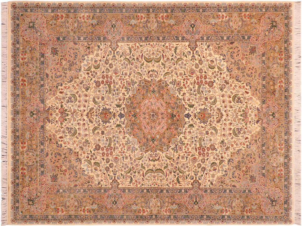 Ghulasha Isfhan Heritage Shenna Beige/Green Wool Rug - 6'1'' x 9'4''