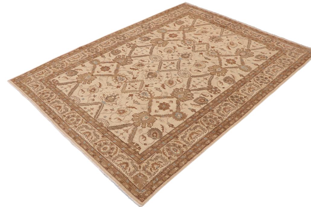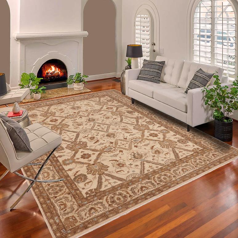 Eclectic Ziegler Rosette Beige/Blue Wool Rug - 8'9'' x 12'10''