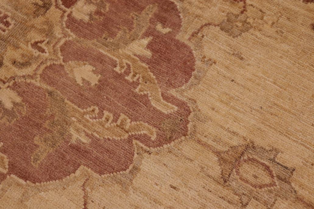 Enhance the ambiance of your home with this magnificent Persian-influenced Turkish hand-knotted rug made by skilled artisans capable of creating the most exceptional vegetable dyes and hand-spun wool. This exquisite handmade rug is a one-of-a-kind Peshawar Kafkaz, otherwise identified as Chobi, Chobi Peshawar, Oushak, or Ziegler rug. These handmade rugs are crafted in Pakistan utilizing superior-quality wool imported from Australia, New Zealand, and Korea in two types of weaves: the Persian weave and the Mori weave. This rug is meticulously crafted by hand using the finest natural vegetable dyes extracted from local plants. The artisans use a blend of hand-spun local and fine merino wool, resulting in a rug with a compelling texture, higher lanolin content, and longer staple. The artisans occasionally incorporate natural or artificial silk into the pile to enhance specific motifs. The finished product is an awe-inspiring flawless design execution and an understated palette that exudes elegance. Contemporary Peshawar rugs draw inspiration from antique Persian designs and feature modern design motifs with vibrant color tones. Hand-knotted with all-natural dyes, resulting in a unique abrash effect and subtle color variations in the pile. Peshawar rugs are known for their stunning and vibrant colors, which were achieved through a process inspired by antique methods. The rug's pile is meticulously trimmed to a moderate thickness and then stone-washed and sun-dried, resulting in a natural sheen and pleasing color tones. Transform the ambiance of your room into a luxurious haven with this gorgeous rug featuring a beautiful color palette. This stunning rug features an intricate oriental design that showcases royalty and seamlessly complements any decor. Its hand-knotted construction and natural fibers provide a soft and comfortable feel underfoot, making it the perfect addition to any room.