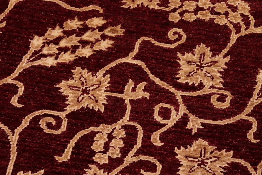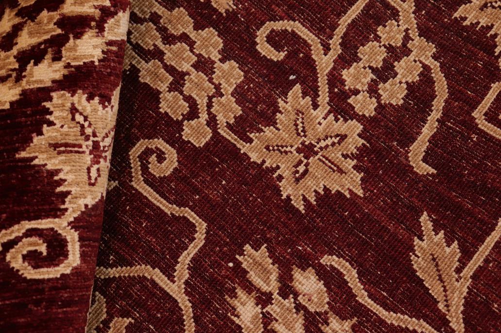 Enhance the ambiance of your home with this magnificent Persian-influenced Turkish hand-knotted rug made by skilled artisans capable of creating the most exceptional vegetable dyes and hand-spun wool. This exquisite handmade rug is a one-of-a-kind Peshawar Kafkaz, otherwise identified as Chobi, Chobi Peshawar, Oushak, or Ziegler rug. These handmade rugs are crafted in Pakistan utilizing superior-quality wool imported from Australia, New Zealand, and Korea in two types of weaves: the Persian weave and the Mori weave. This rug is meticulously crafted by hand using the finest natural vegetable dyes extracted from local plants. The artisans use a blend of hand-spun local and fine merino wool, resulting in a rug with a compelling texture, higher lanolin content, and longer staple. The artisans occasionally incorporate natural or artificial silk into the pile to enhance specific motifs. The finished product is an awe-inspiring flawless design execution and an understated palette that exudes elegance. Contemporary Peshawar rugs draw inspiration from antique Persian designs and feature modern design motifs with vibrant color tones. Hand-knotted with all-natural dyes, resulting in a unique abrash effect and subtle color variations in the pile. Peshawar rugs are known for their stunning and vibrant colors, which were achieved through a process inspired by antique methods. The rug's pile is meticulously trimmed to a moderate thickness and then stone-washed and sun-dried, resulting in a natural sheen and pleasing color tones. Transform the ambiance of your room into a luxurious haven with this gorgeous rug featuring a beautiful color palette. This stunning rug features an intricate oriental design that showcases royalty and seamlessly complements any decor. Its hand-knotted construction and natural fibers provide a soft and comfortable feel underfoot, making it the perfect addition to any room.