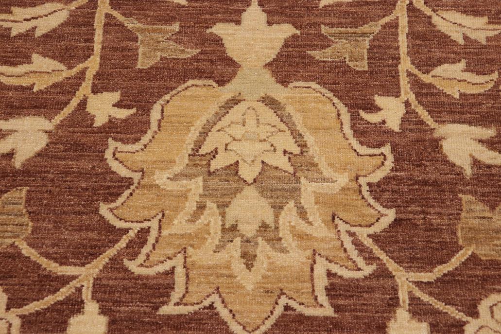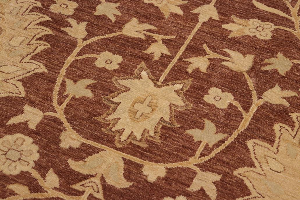 Enhance the ambiance of your home with this magnificent Persian-influenced Turkish hand-knotted rug made by skilled artisans capable of creating the most exceptional vegetable dyes and hand-spun wool. This exquisite handmade rug is a one-of-a-kind Peshawar Kafkaz, otherwise identified as Chobi, Chobi Peshawar, Oushak, or Ziegler rug. These handmade rugs are crafted in Pakistan utilizing superior-quality wool imported from Australia, New Zealand, and Korea in two types of weaves: the Persian weave and the Mori weave. This rug is meticulously crafted by hand using the finest natural vegetable dyes extracted from local plants. The artisans use a blend of hand-spun local and fine merino wool, resulting in a rug with a compelling texture, higher lanolin content, and longer staple. The artisans occasionally incorporate natural or artificial silk into the pile to enhance specific motifs. The finished product is an awe-inspiring flawless design execution and an understated palette that exudes elegance. Contemporary Peshawar rugs draw inspiration from antique Persian designs and feature modern design motifs with vibrant color tones. Hand-knotted with all-natural dyes, resulting in a unique abrash effect and subtle color variations in the pile. Peshawar rugs are known for their stunning and vibrant colors, which were achieved through a process inspired by antique methods. The rug's pile is meticulously trimmed to a moderate thickness and then stone-washed and sun-dried, resulting in a natural sheen and pleasing color tones. Transform the ambiance of your room into a luxurious haven with this gorgeous rug featuring a beautiful color palette. This stunning rug features an intricate oriental design that showcases royalty and seamlessly complements any decor. Its hand-knotted construction and natural fibers provide a soft and comfortable feel underfoot, making it the perfect addition to any room.