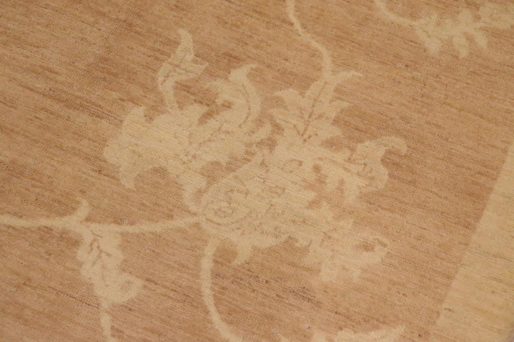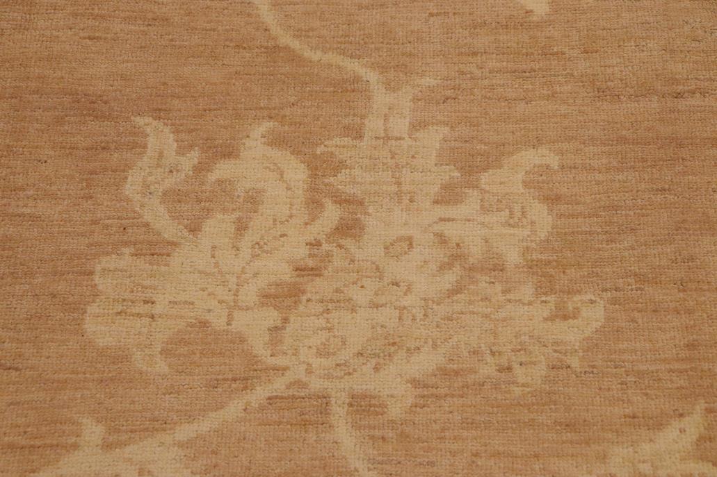 Enhance the ambiance of your home with this magnificent Persian-influenced Turkish hand-knotted rug made by skilled artisans capable of creating the most exceptional vegetable dyes and hand-spun wool. This exquisite handmade rug is a one-of-a-kind Peshawar Kafkaz, otherwise identified as Chobi, Chobi Peshawar, Oushak, or Ziegler rug. These handmade rugs are crafted in Pakistan utilizing superior-quality wool imported from Australia, New Zealand, and Korea in two types of weaves: the Persian weave and the Mori weave. This rug is meticulously crafted by hand using the finest natural vegetable dyes extracted from local plants. The artisans use a blend of hand-spun local and fine merino wool, resulting in a rug with a compelling texture, higher lanolin content, and longer staple. The artisans occasionally incorporate natural or artificial silk into the pile to enhance specific motifs. The finished product is an awe-inspiring flawless design execution and an understated palette that exudes elegance. Contemporary Peshawar rugs draw inspiration from antique Persian designs and feature modern design motifs with vibrant color tones. Hand-knotted with all-natural dyes, resulting in a unique abrash effect and subtle color variations in the pile. Peshawar rugs are known for their stunning and vibrant colors, which were achieved through a process inspired by antique methods. The rug's pile is meticulously trimmed to a moderate thickness and then stone-washed and sun-dried, resulting in a natural sheen and pleasing color tones. Transform the ambiance of your room into a luxurious haven with this gorgeous rug featuring a beautiful color palette. This stunning rug features an intricate oriental design that showcases royalty and seamlessly complements any decor. Its hand-knotted construction and natural fibers provide a soft and comfortable feel underfoot, making it the perfect addition to any room.