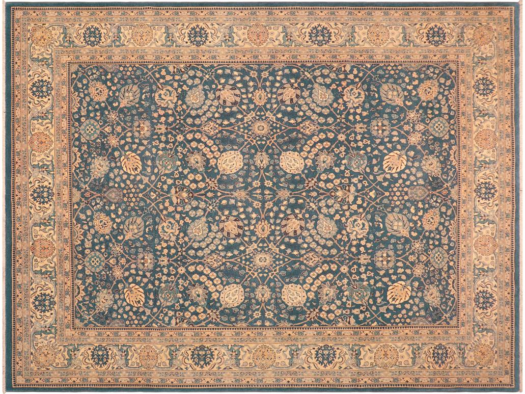Turkish Knotted Istanbul Corliss Blue/Beige Wool Rug - 8'0'' x 9'10''