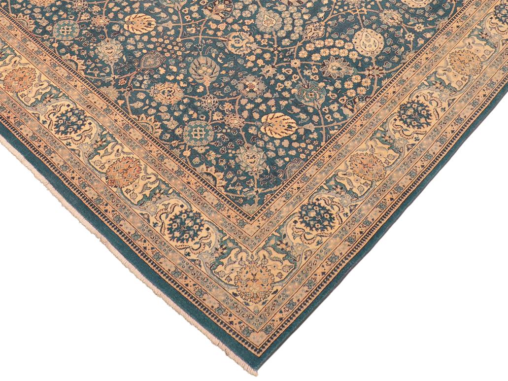 Designed with a mesmerizing intricate traditional motif this glorious hand knotted rug is a masterpiece that will fill any space with sophistication and grace. An exhilarating color pallet with an elaborate design, this masterpiece features luxurious hand spun wool with all vegetable dyes to add comfort and style to your decor. The design, color and beautiful chromatic composition with a sheen in traditional and transitional designs, exude beauty, elegance and quality make this rug a masterpiece of its own.