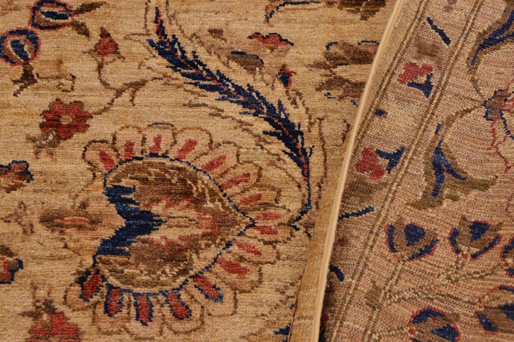 Enhance the ambiance of your home with this magnificent Persian-influenced Turkish hand-knotted rug made by skilled artisans capable of creating the most exceptional vegetable dyes and hand-spun wool. This exquisite handmade rug is a one-of-a-kind Peshawar Kafkaz, otherwise identified as Chobi, Chobi Peshawar, Oushak, or Ziegler rug. These handmade rugs are crafted in Pakistan utilizing superior-quality wool imported from Australia, New Zealand, and Korea in two types of weaves: the Persian weave and the Mori weave. This rug is meticulously crafted by hand using the finest natural vegetable dyes extracted from local plants. The artisans use a blend of hand-spun local and fine merino wool, resulting in a rug with a compelling texture, higher lanolin content, and longer staple. The artisans occasionally incorporate natural or artificial silk into the pile to enhance specific motifs. The finished product is an awe-inspiring flawless design execution and an understated palette that exudes elegance. Contemporary Peshawar rugs draw inspiration from antique Persian designs and feature modern design motifs with vibrant color tones. Hand-knotted with all-natural dyes, resulting in a unique abrash effect and subtle color variations in the pile. Peshawar rugs are known for their stunning and vibrant colors, which were achieved through a process inspired by antique methods. The rug's pile is meticulously trimmed to a moderate thickness and then stone-washed and sun-dried, resulting in a natural sheen and pleasing color tones. Transform the ambiance of your room into a luxurious haven with this gorgeous rug featuring a beautiful color palette. This stunning rug features an intricate oriental design that showcases royalty and seamlessly complements any decor. Its hand-knotted construction and natural fibers provide a soft and comfortable feel underfoot, making it the perfect addition to any room.