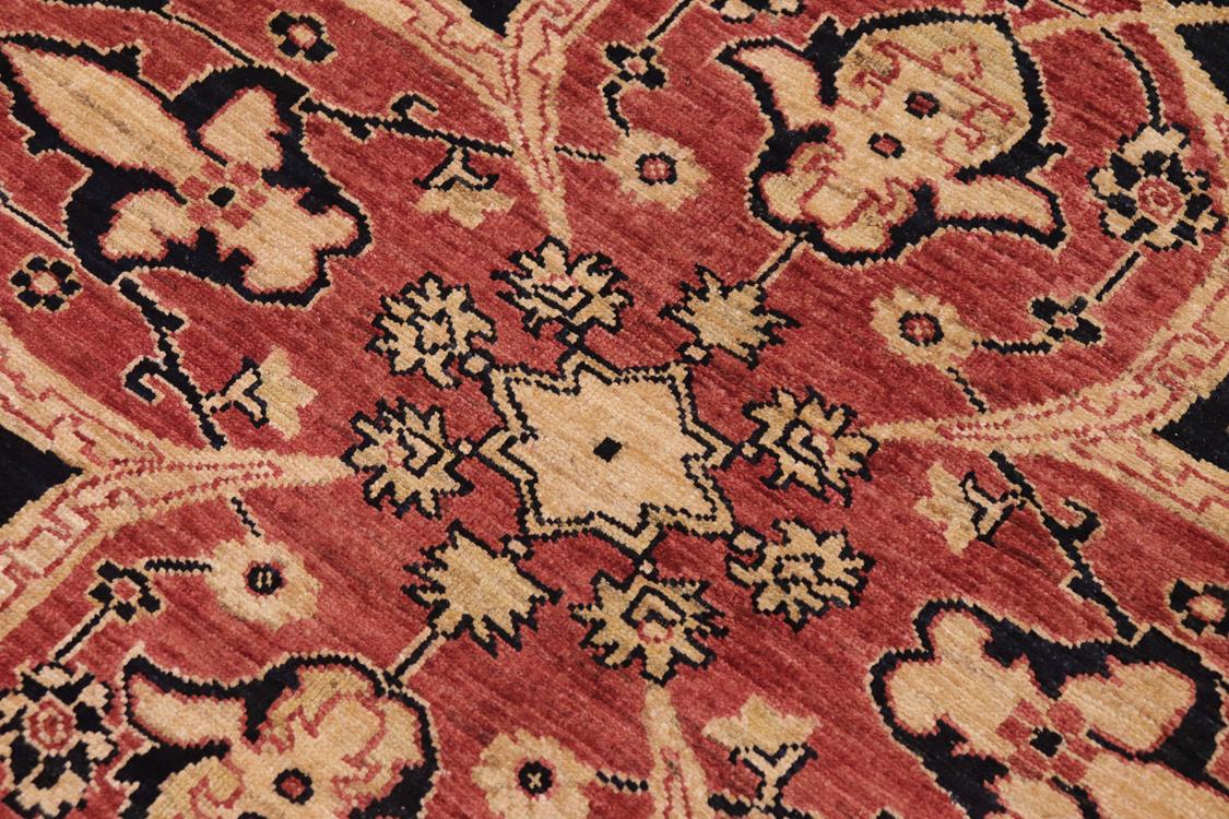 Enhance the ambiance of your home with this magnificent Persian-influenced Turkish hand-knotted rug made by skilled artisans capable of creating the most exceptional vegetable dyes and hand-spun wool. This exquisite handmade rug is a one-of-a-kind Peshawar Kafkaz, otherwise identified as Chobi, Chobi Peshawar, Oushak, or Ziegler rug. These handmade rugs are crafted in Pakistan utilizing superior-quality wool imported from Australia, New Zealand, and Korea in two types of weaves: the Persian weave and the Mori weave. This rug is meticulously crafted by hand using the finest natural vegetable dyes extracted from local plants. The artisans use a blend of hand-spun local and fine merino wool, resulting in a rug with a compelling texture, higher lanolin content, and longer staple. The artisans occasionally incorporate natural or artificial silk into the pile to enhance specific motifs. The finished product is an awe-inspiring flawless design execution and an understated palette that exudes elegance. Contemporary Peshawar rugs draw inspiration from antique Persian designs and feature modern design motifs with vibrant color tones. Hand-knotted with all-natural dyes, resulting in a unique abrash effect and subtle color variations in the pile. Peshawar rugs are known for their stunning and vibrant colors, which were achieved through a process inspired by antique methods. The rug's pile is meticulously trimmed to a moderate thickness and then stone-washed and sun-dried, resulting in a natural sheen and pleasing color tones. Transform the ambiance of your room into a luxurious haven with this gorgeous rug featuring a beautiful color palette. This stunning rug features an intricate oriental design that showcases royalty and seamlessly complements any decor. Its hand-knotted construction and natural fibers provide a soft and comfortable feel underfoot, making it the perfect addition to any room.