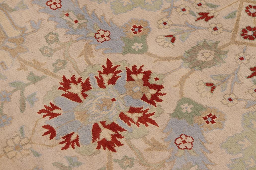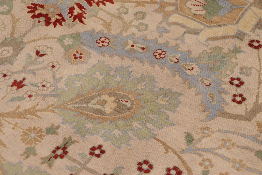 Enhance the ambiance of your home with this magnificent Persian-influenced Turkish hand-knotted rug made by skilled artisans capable of creating the most exceptional vegetable dyes and hand-spun wool. This exquisite handmade rug is a one-of-a-kind Peshawar Kafkaz, otherwise identified as Chobi, Chobi Peshawar, Oushak, or Ziegler rug. These handmade rugs are crafted in Pakistan utilizing superior-quality wool imported from Australia, New Zealand, and Korea in two types of weaves: the Persian weave and the Mori weave. This rug is meticulously crafted by hand using the finest natural vegetable dyes extracted from local plants. The artisans use a blend of hand-spun local and fine merino wool, resulting in a rug with a compelling texture, higher lanolin content, and longer staple. The artisans occasionally incorporate natural or artificial silk into the pile to enhance specific motifs. The finished product is an awe-inspiring flawless design execution and an understated palette that exudes elegance. Contemporary Peshawar rugs draw inspiration from antique Persian designs and feature modern design motifs with vibrant color tones. Hand-knotted with all-natural dyes, resulting in a unique abrash effect and subtle color variations in the pile. Peshawar rugs are known for their stunning and vibrant colors, which were achieved through a process inspired by antique methods. The rug's pile is meticulously trimmed to a moderate thickness and then stone-washed and sun-dried, resulting in a natural sheen and pleasing color tones. Transform the ambiance of your room into a luxurious haven with this gorgeous rug featuring a beautiful color palette. This stunning rug features an intricate oriental design that showcases royalty and seamlessly complements any decor. Its hand-knotted construction and natural fibers provide a soft and comfortable feel underfoot, making it the perfect addition to any room.