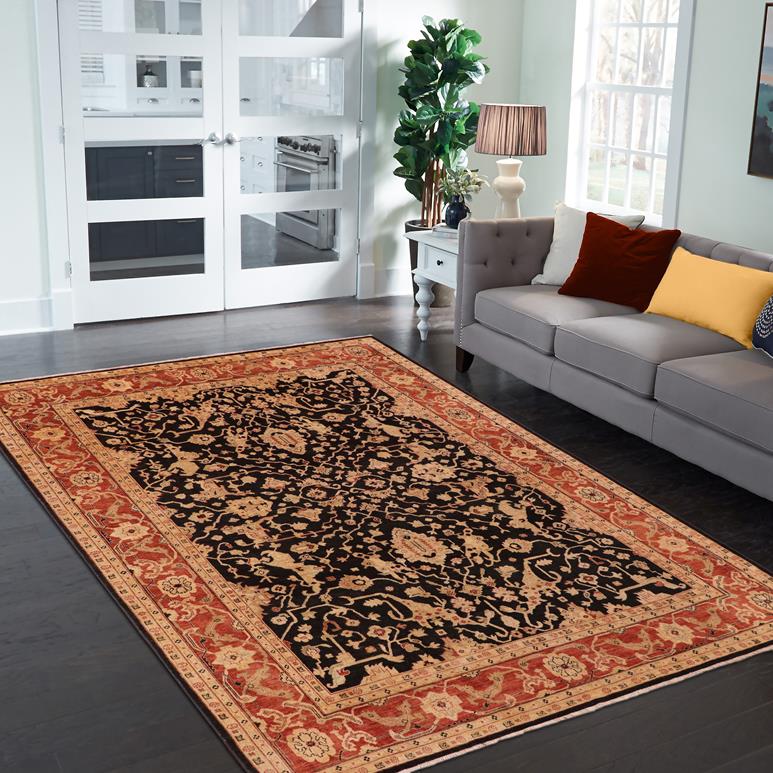 Eclectic Ziegler Romaine Black/Rust Wool Rug - 8'8'' x 12'0''