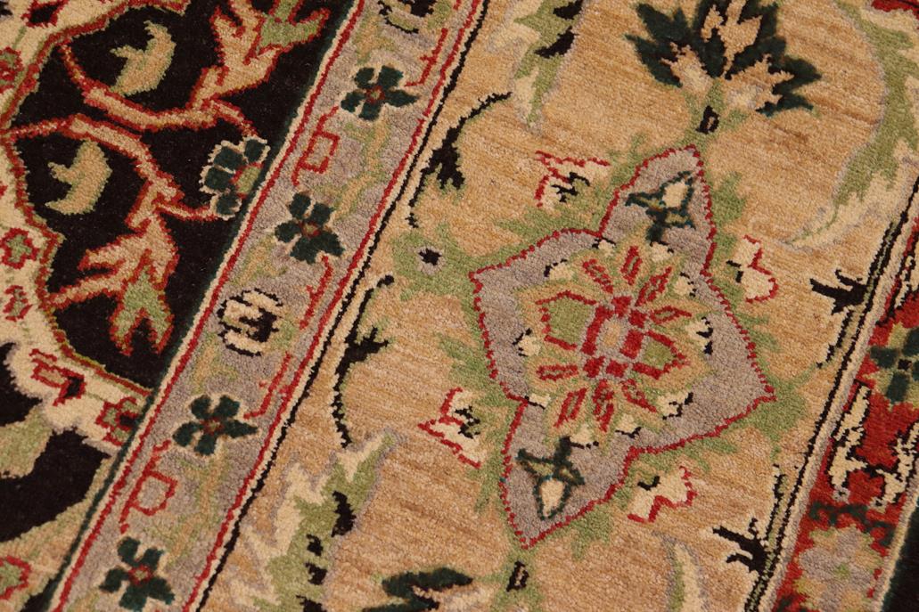 Enhance the ambiance of your home with this magnificent Persian-influenced Turkish hand-knotted rug made by skilled artisans capable of creating the most exceptional vegetable dyes and hand-spun wool. This exquisite handmade rug is a one-of-a-kind Peshawar Kafkaz, otherwise identified as Chobi, Chobi Peshawar, Oushak, or Ziegler rug. These handmade rugs are crafted in Pakistan utilizing superior-quality wool imported from Australia, New Zealand, and Korea in two types of weaves: the Persian weave and the Mori weave. This rug is meticulously crafted by hand using the finest natural vegetable dyes extracted from local plants. The artisans use a blend of hand-spun local and fine merino wool, resulting in a rug with a compelling texture, higher lanolin content, and longer staple. The artisans occasionally incorporate natural or artificial silk into the pile to enhance specific motifs. The finished product is an awe-inspiring flawless design execution and an understated palette that exudes elegance. Contemporary Peshawar rugs draw inspiration from antique Persian designs and feature modern design motifs with vibrant color tones. Hand-knotted with all-natural dyes, resulting in a unique abrash effect and subtle color variations in the pile. Peshawar rugs are known for their stunning and vibrant colors, which were achieved through a process inspired by antique methods. The rug's pile is meticulously trimmed to a moderate thickness and then stone-washed and sun-dried, resulting in a natural sheen and pleasing color tones. Transform the ambiance of your room into a luxurious haven with this gorgeous rug featuring a beautiful color palette. This stunning rug features an intricate oriental design that showcases royalty and seamlessly complements any decor. Its hand-knotted construction and natural fibers provide a soft and comfortable feel underfoot, making it the perfect addition to any room.